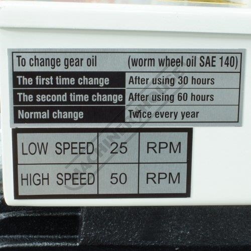 This machine comes equipped to run two speeds for mild steel, stainless steel, aluminium, etc.