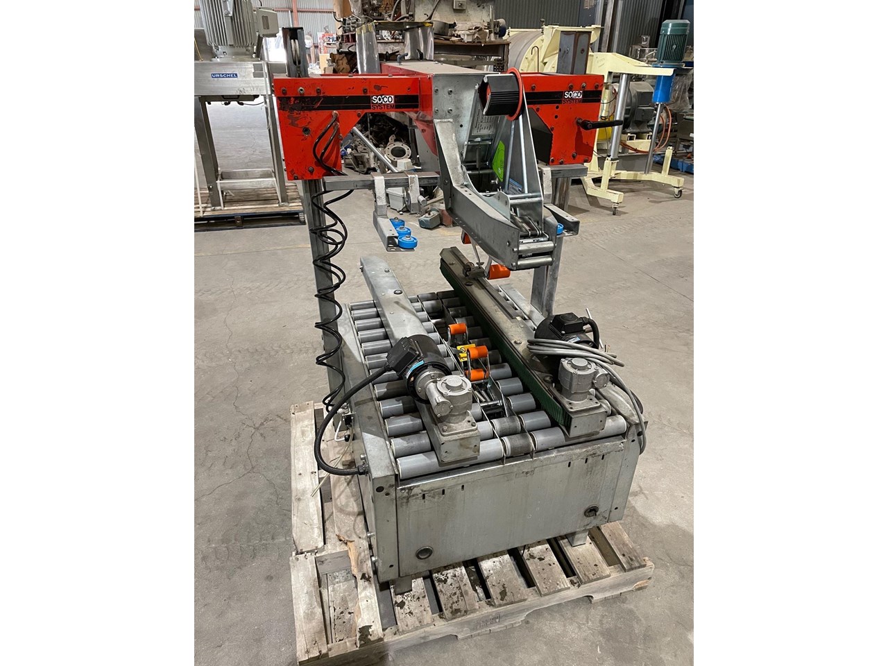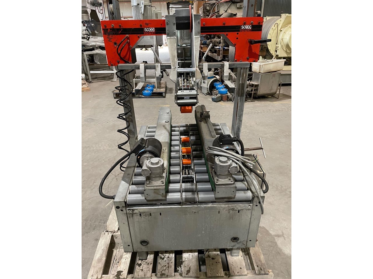 Carton Box Taper, Top and bottom closure. The machine is constructed for ``round-the-clock`` operation with minimum service requirements. The short length of the machine ensures high production capacity and maximum space utilisation. Ideal for integration into fully automatic packaging lines of uniform cases in batches. Max. (LxWxH) mm 550 x 460 x 470 Min. (LxWxH) mm 200 x 120 x 95 Good working condition, 415V.