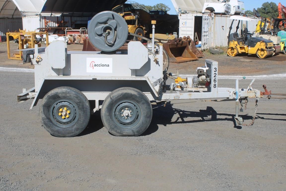 2004 Model, Bogie Axle Trailer, 1995kg GVM, 1500L Water Tank, Honda Motor, Hoses Reel.