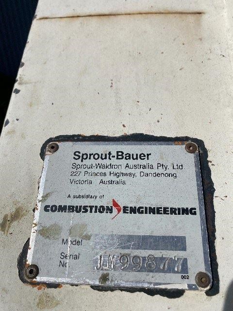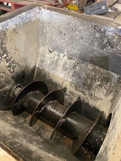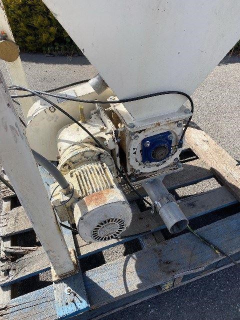 Flour Sifter. Sprout Bauer (Jaybee Engineering) Dandenong. Rotary Screen last used in Confectionary Plant. Screen 600mm long. Taperd 250mm dia feed auger to 400mm with 2mm holes , Teflon wipers. Powered by 7.5kw 415v 4 pole Toshiba motor rated IP6X AUS. DIP88 . Discharge hopper fitted with Sprout Bauer 150mm Rotary valve and Geared motor.