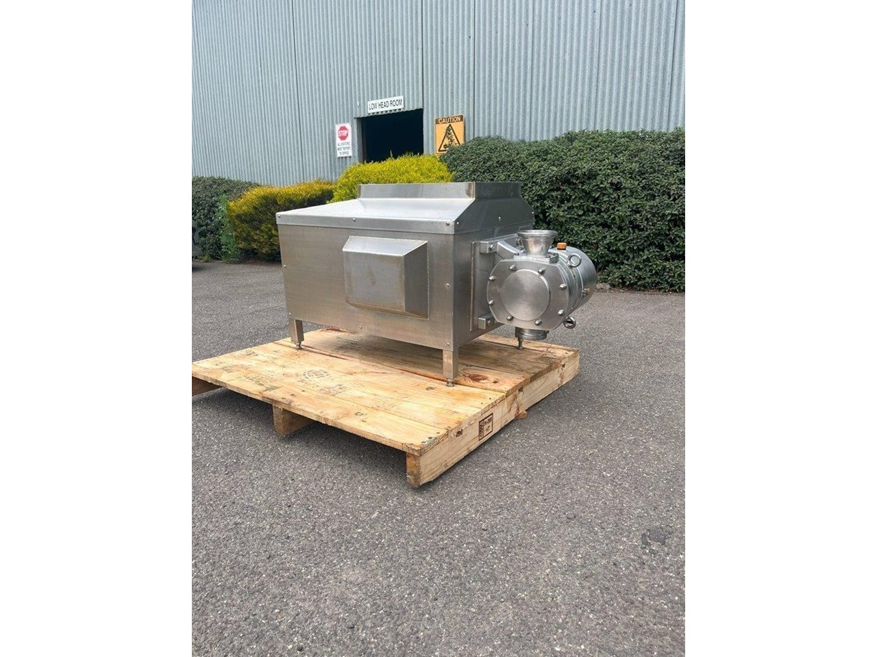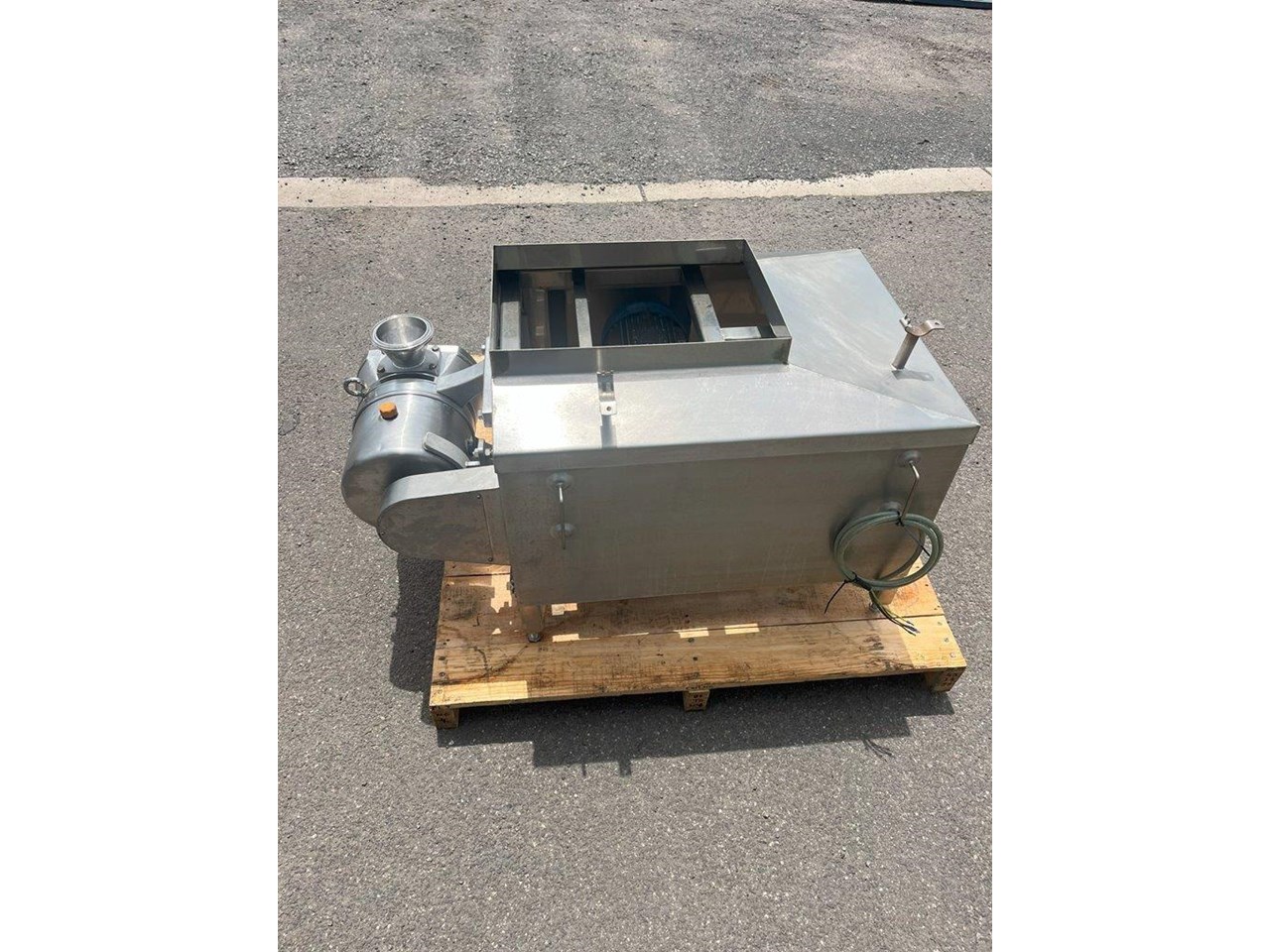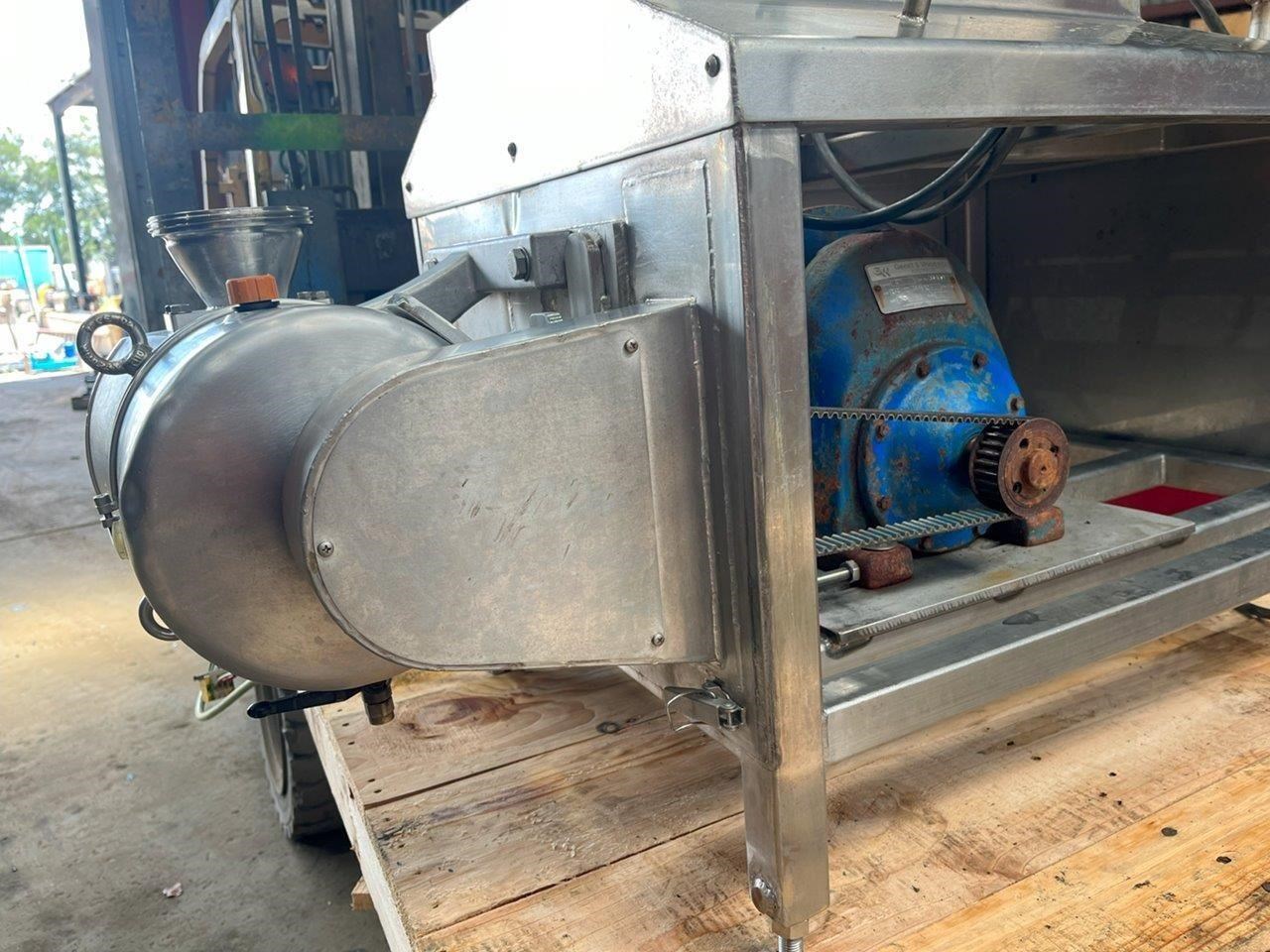 SPX Stainless steel lobe pump. SPX DW4/073/10 4inch BSM rectangular inlet 3 inch BSM outlet Rotor: SS 316L High temperature 180c Capacity: 73litre/100 revs Current set up tested to 150L/min or 9,000 L/Hr 3 Phase, 2.2kW, 415V geared drive. Lobe pump is set up in vertical arrangement and mounted on stainless steel frame. Arrangement can be modified to suit required task. Rectangular Inlet for extremely high viscosity products. By applying a rectangular inlet, the inlet conditions are considerably improved. Mechanical seals look to be in good condition. Unit in good condition and runs well.