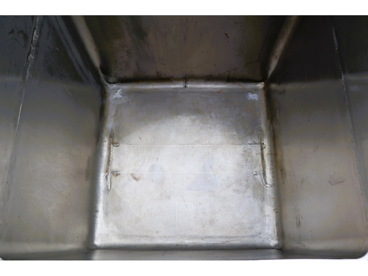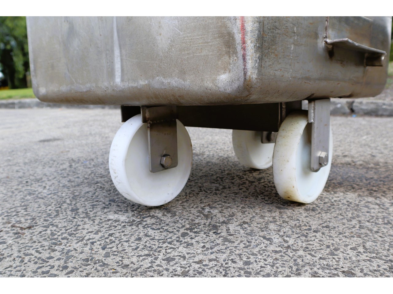 This stainless steel bin tub trolley is in good condition. It's equipped with side tracks for bin lifters to easily handle and castors for mobility. It's compact form and small footprint makes it versatile for a range of usage applications.