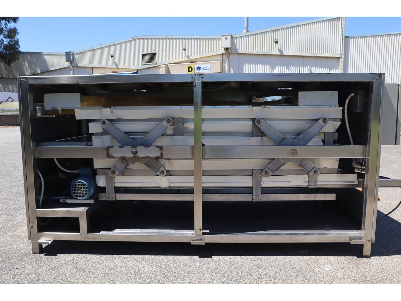 Stainless steel vibratory pasta dryer designed in excellent condition. Movement, ventilation and heating allow to separate the product, preserve its original shape and dry it superficially, so that it can be easily packaged, eliminating a percentage of humidity and prolonging its conservation.