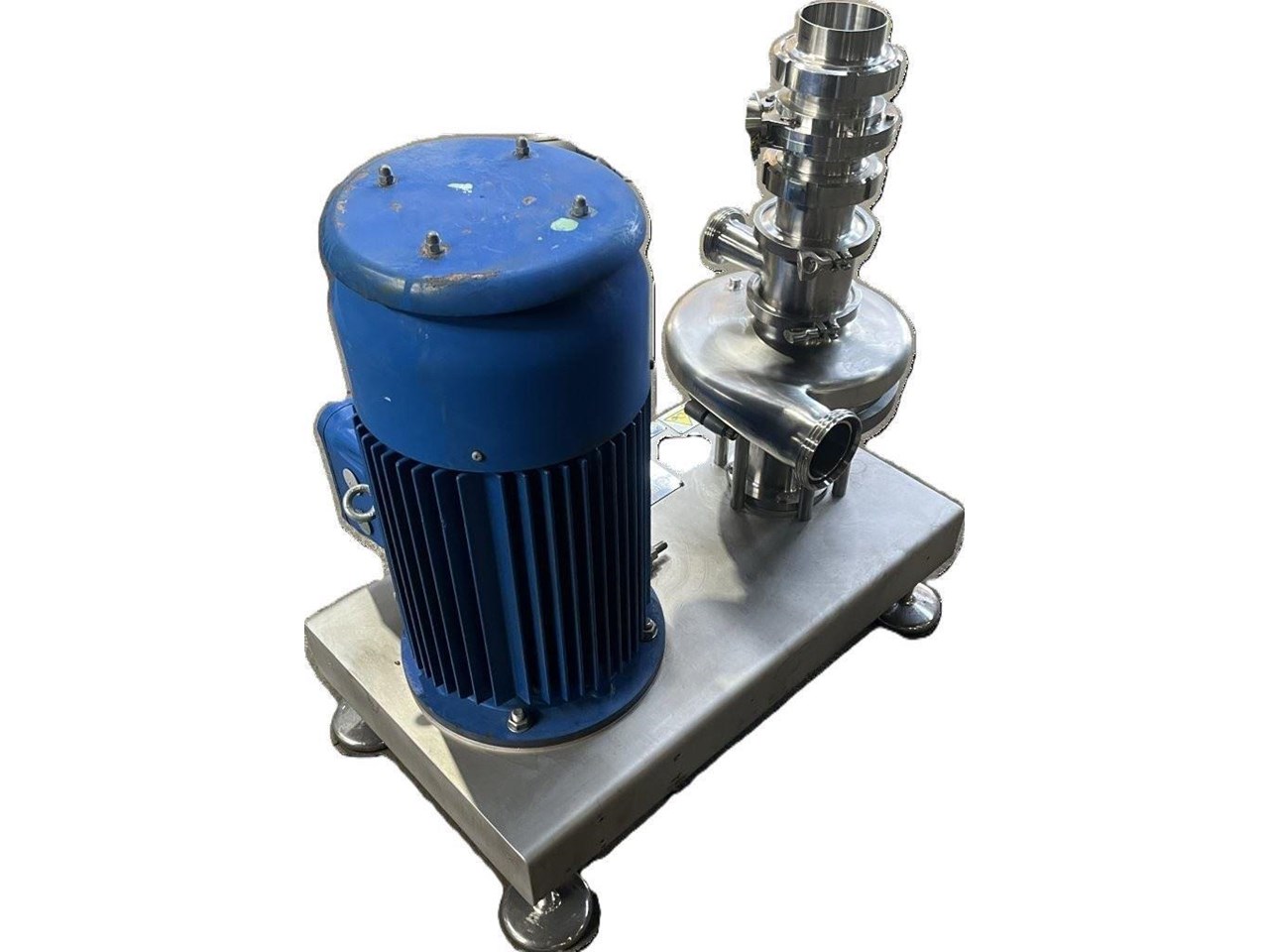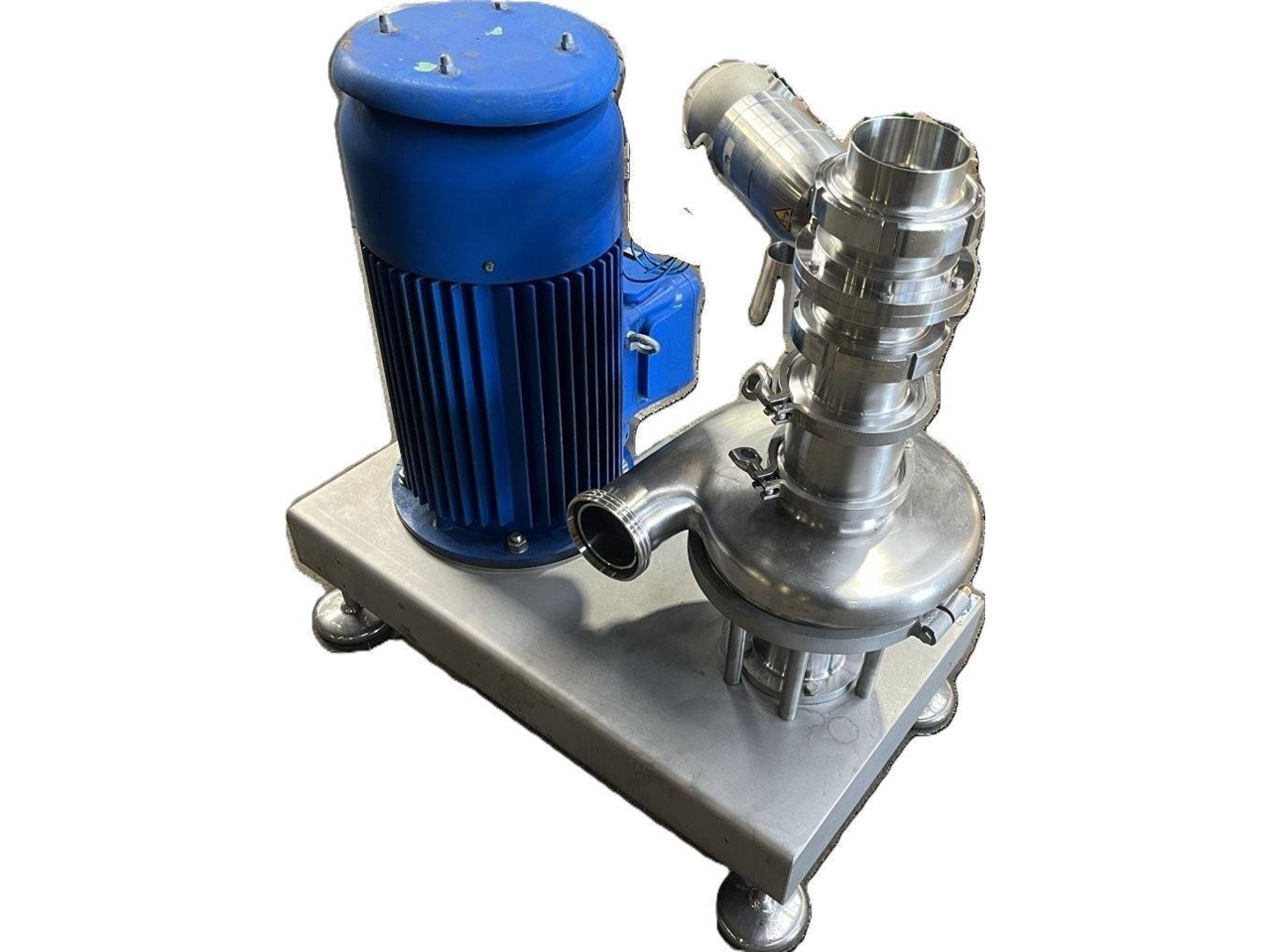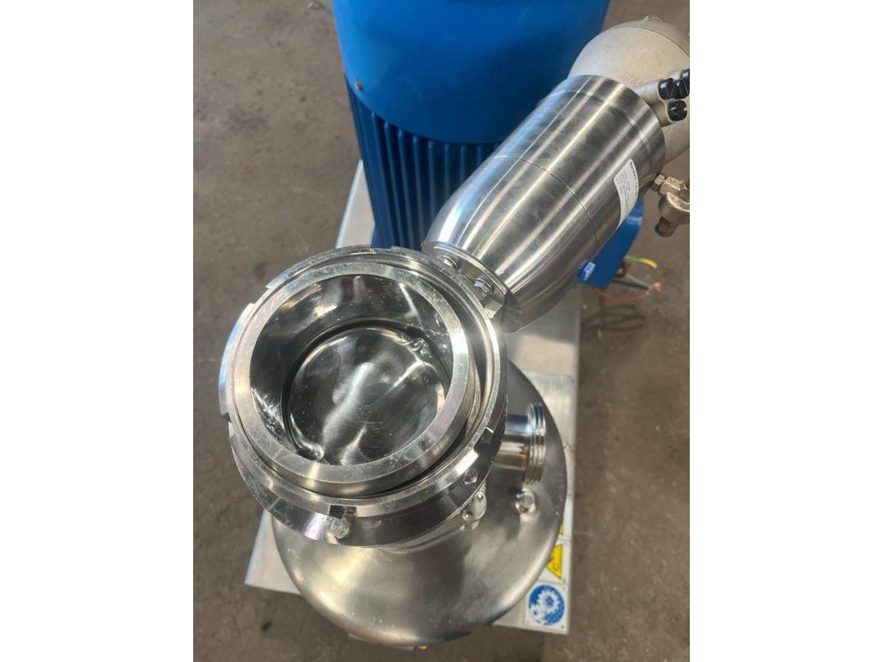 TECNINOX - Tri-Blender ATEX Rated Powder/liquid blending system. Fast, thorough and trouble-free blending. Tri-Blenders make it easier than ever to mix powders with liquids, and avoid the time, trouble and lost product associated with reprocessing and pre- and post-blending operations. The Tecninox Tri-Blender is specially designed to thoroughly and efficiently blend powders and liquids, while minimising the air introduced into the process. That means the lumping, foaming and flooding associated with conventional mixing equipment is almost totally eliminated. Unique Tube-in Tube Design. The Tri-Blender is designed to be installed close to the Vessel outlet and at floor level. That's why companies from every process industry are turning to the Tri-Blender to streamline blending applications. The Tri-Blender is designed to integrate easily into your present process system. Plus, its compact size and easy portability means it can be moved or installed virtually any place in the process. Operation Principles. Dry ingredients are fed into the hopper. Vacuum created by the impeller draws the dry ingredients into the blending chamber. As the dry ingredients are added through the hopper, liquid is simultaneously pumped into the head of Tri-Blender. The diffuser tube separates powder from liquid until they are fed into the blending chamber. Applications: - Dairy - powdered milk, butter-milk, ice cream mix, whey protein - Food - pudding, chip dip, pizza sauce, stabilizer addition, powdered egg, starch and gum - Beverage - concentrate, flavor addition, vitamin drinks - Personal Care - soap blends,lotion, cosmetics, hair gel, tooth paste - Chemical - herbicide agent, film solution, fertilizer, biodiesel - Pharmaceutical - active ingredient blends, cough syrup, tablet coating Model Number: F4329-MD ATEX. ATEX Rating: II 2GD IIB T4/T135degreesC Tmax fluid=90C Dry Ingredient Capacity: 159 KG/MIN. Flow Rate: 34,000 L/H. Powder Inlet: 4 Inch Liquid Inlet: 2 Inch Liquid Outlet: 3 Inch Powder inlet has a pneumatic control valve. CEMP Electric motor, 3 Phase, 380/660V, 37.15/21.45A, 17.25kW, 60Hz, 1760RPM, EX rated Motor. Impeller speed approximately 3500 RPM.