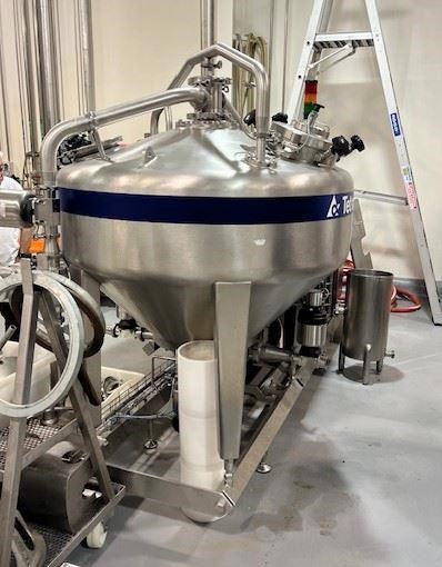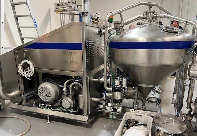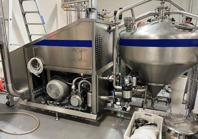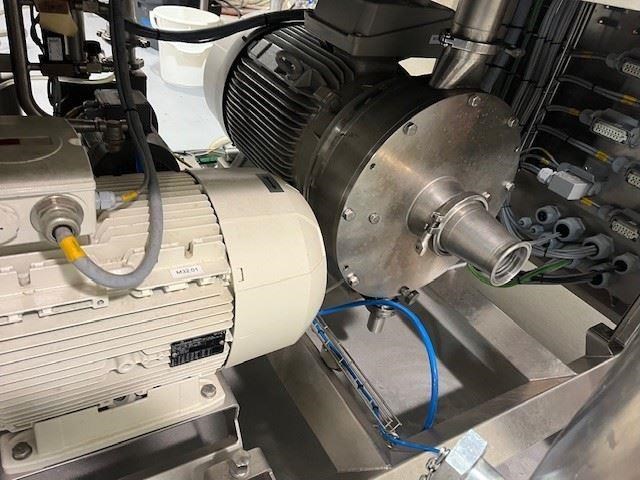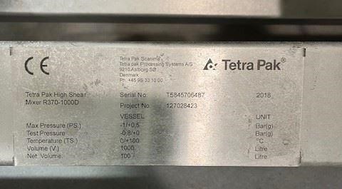 Tetra Pak High Shear Mixer Model R370-1000D Year 2018 The New Generation of High Shear Mixer Vessel size: 300 litres with final output < 35,000 litre/hr Unparallel mixing solution achieved when the recirculation mixing principle equipped with new designed-mixing head and deaerator system. Smaller particle size and significantly in reducing foams are the most advantage of this unit. The new generation high shear mixer is designed to enable mixing of high-viscous products in recirculation setups. It achieves superior emulsification, powder dissolving and deaeration performance and it represents an ideal solution for producing high volumes of most concentrated food products including beverage concentrates, ice cream mixes, infant formulas and dairy desserts. Applications: From low to medium viscous products < 2,000 cP such as Dairy, Beverage especially when the powder used create lots of foams Wide range of applications Dairy, Beverages, Prepared foods and sauces, cheese and ice cream. Supply and consumption data Voltage, V (Hz) 380-480 (50/60) Power, kW 58.2 Water, l/h 100 Compressed air, Nl/h 100 Shear rate, s-1 100 000 Processing parameters Final product capacity, kg/h < 35 000 Viscosity, cP ? 2 000 Mixing temperature, °C 80 Oil addition rate, kg/min 75 Powder addition rate*, kg/min 175 Dimensions Length, mm 3350 Width, mm 1600 Height, mm 2100