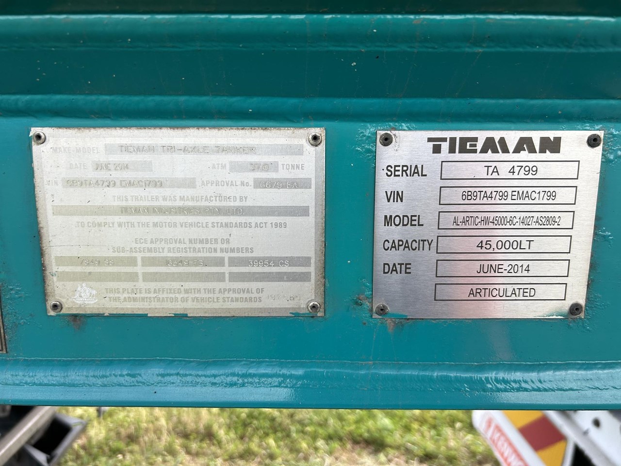 | Title | 2014 TIEMAN TRIAXLE ALUMINIUM FUEL TANKER |