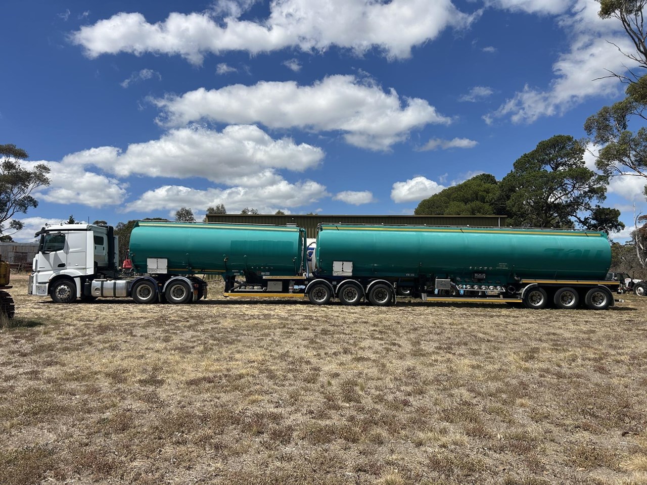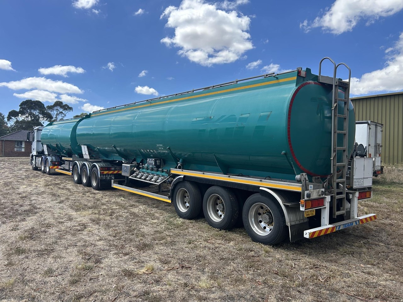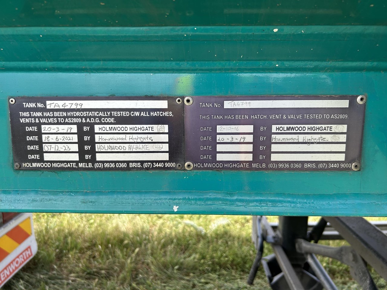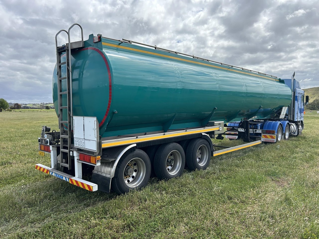Tieman 2014 build 45,000 L six compartment Triaxle aluminium Fuel Tanker bottom load vapour recovery. Hendrickson axles on Hendrickson airbag suspension with EBS brakes on new air bags breaks slack adjusters and boosters underground protection air operated safety rails straight from a major Fuel transport company we can supply an A trailer to make a 25 m B double at extra cost .