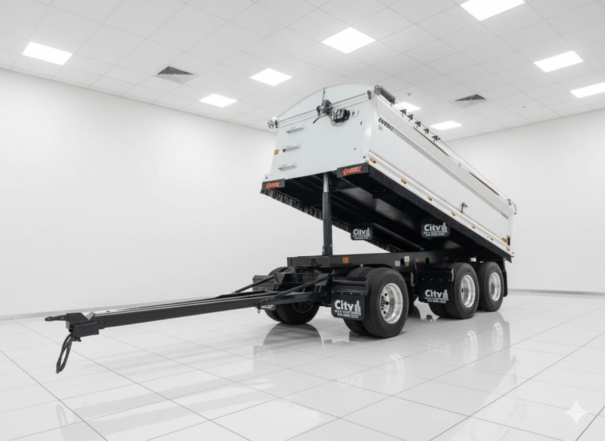 ATM: 26,000, 5.4m L x 1.05m H Bin, TMC Disc Brake Axles, Airbag Suspension, 8.25x22.5 Alloy Wheels on 11R22.5 Tyres, 2 Way Air Tailgate, Razor Electric PVC Tarp with Tarp Protector, Rear Facing Load Camera & LED Lighting