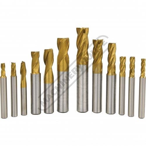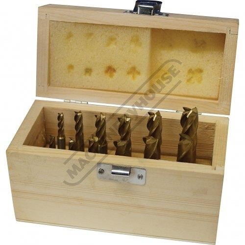 Mill cutter set with a range of both slot drills and end mills. Suitable for hobby work and small workshops.