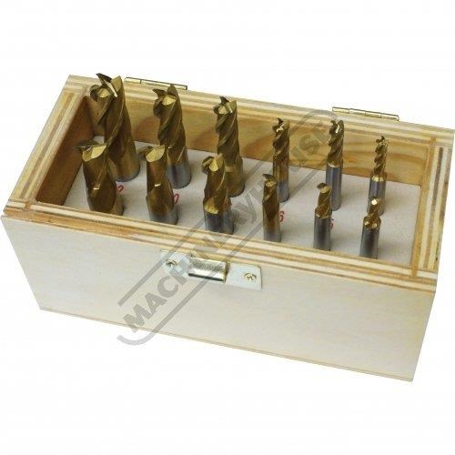 Mill cutter set with a range of both slot drills and end mills. Suitable for hobby work and small workshops.
