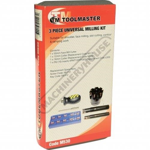 TOOLMASTER Universal Milling Kit - 4 Piece 3 x Positive Rake Cutters Ø12 & Ø16mm End Mills + Ø50mm Face Mill Cutters