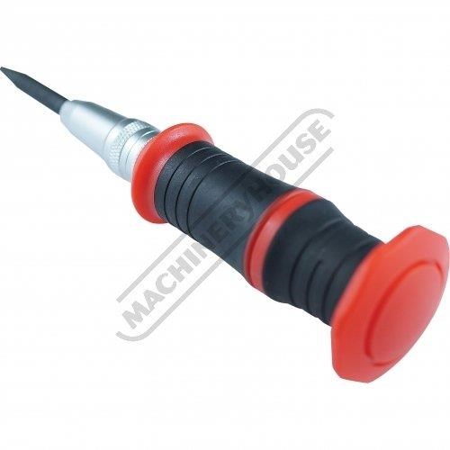Automatic centre punch is made from high carbon steel and hardened and tempered for a long working life, and there no need to use a hammer just line up & press. This punch has a Ø22mm ergonomically shaped body and a large Ø37mm curved end for a firm and safe grip.