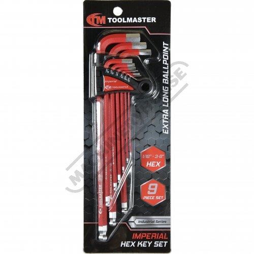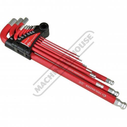 TOOLMASTER Imperial Hex Keys Ball Point - Extra Long Industrial Series 1/16`` - 3/8`` 9 Piece Set
