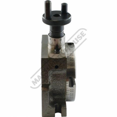 Work positioning device used in metalworking. It enables the operator to drill or cut work at exact intervals around a fixed (usually horizontal or vertical) axis.