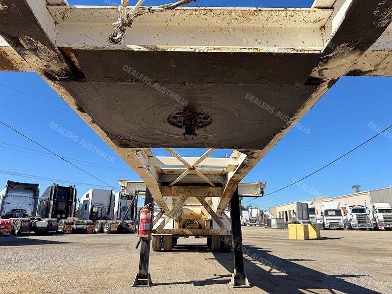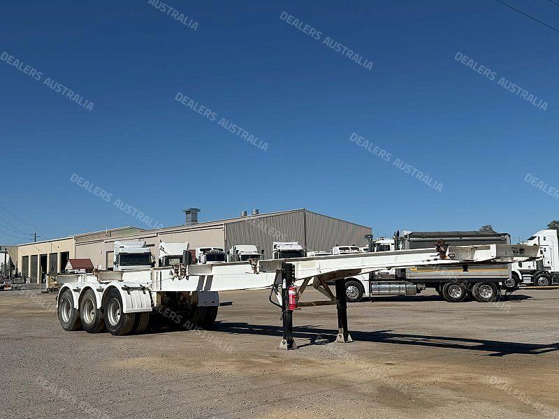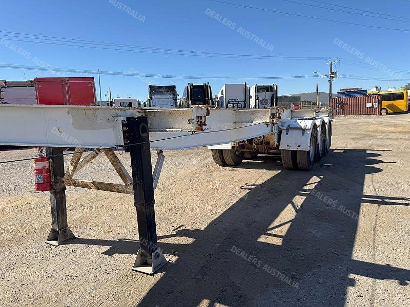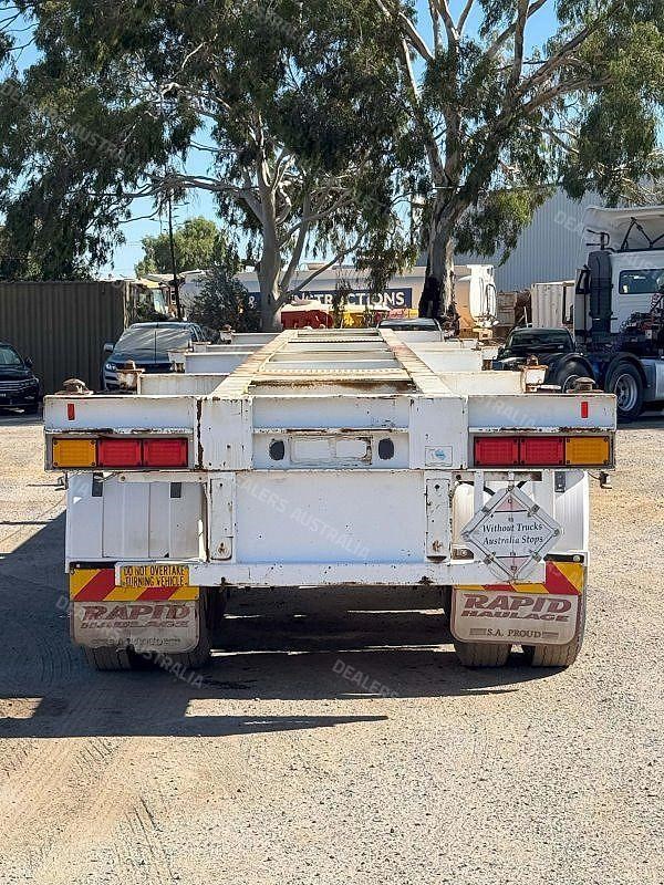Solid tri-axle skel with container versatility, set up for both single and dual 20ft or standard 40ft operation.
