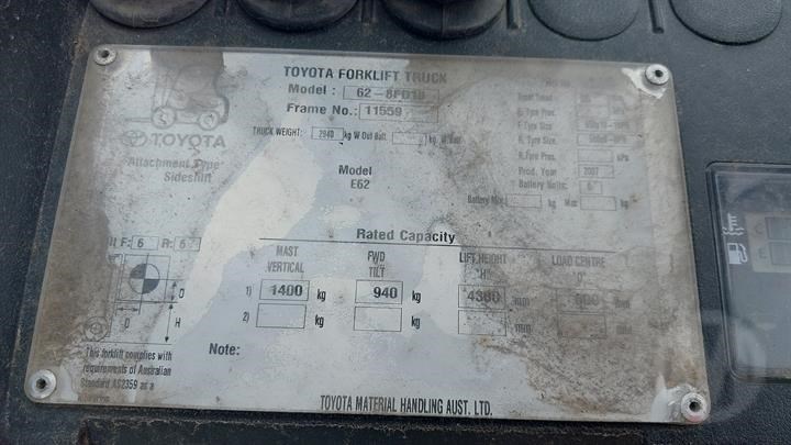 | Title | 2007 TOYOTA 62-8FD18 FORKLIFT |