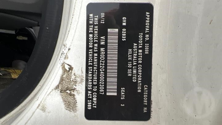 | Title | 2012 TOYOTA HILUX 150 WORKMATE |