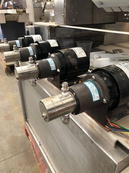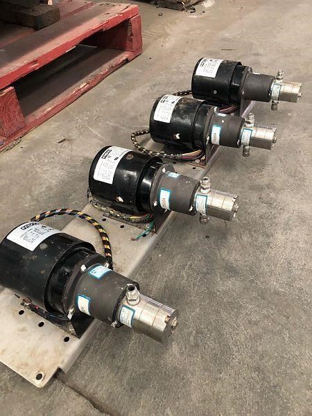 Tuthill D series 316 Gear Pump. Port size 1/4 or 13mm. Model D9863 PYVQ. Capacity approx depends on RPM 22L to 160L/hr. Pressures 17bar. Drive FASCO 220v motor. 3000rpm. 4 Pumps available, price per pump.