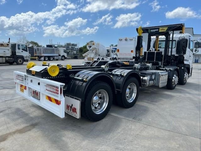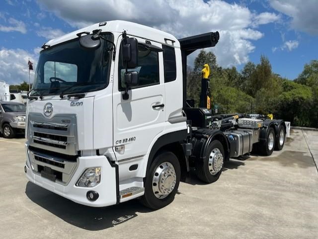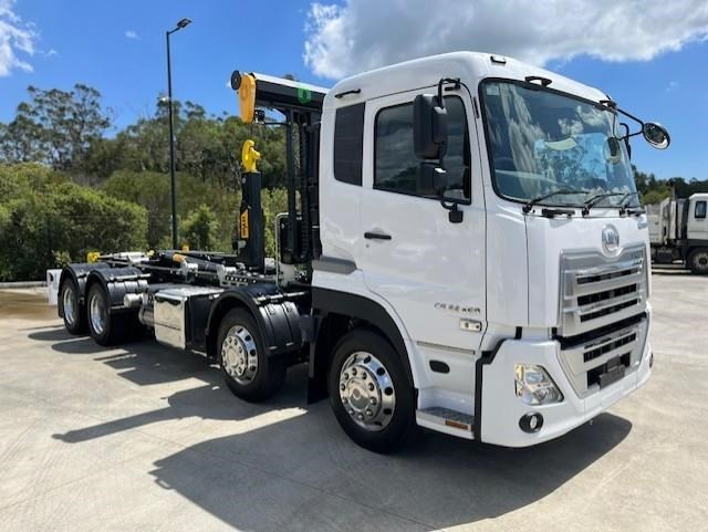 UD CG 32 460 Rigid: 09/2024 Compliance, D11P 460HP, ESCOT-VI 12 Speed Automated Transmission, 5,700mm Wheel Base, Standard UD Sleeper Cab, Air Ride Front Suspension, 4.50 Diff Ratio, 400 Ltr Left Hand Side Fuel Tank Capacity, Polished Alloy Rims with Bridgestone Tyres, 60,000kgs GCM, 32,000kgs GVM. Completed with HYVA Hook lift Body & Standard Accessories and Equipment. Ready for Immediate Delivery from any WTG Dealership.