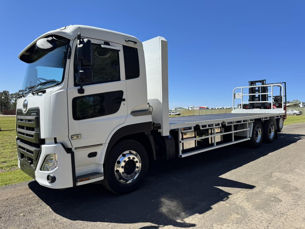 2019 UD Quon, auto, only 200k kms, 400hp, airbag suspension, 12 pallet tray fitted with a new Moffett M5 extra reach, truck comes workshop checked, serviced and complete with NSW RW for $259,000+GST