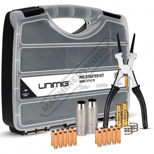 UNIMIG WELDERS UMSK15 SB15 Mig Torch Consumable Pack Suits SB15 Mig Torch Includes Tips, Tip Holders, Nozzles, Nozzle Springs & Mig Plier