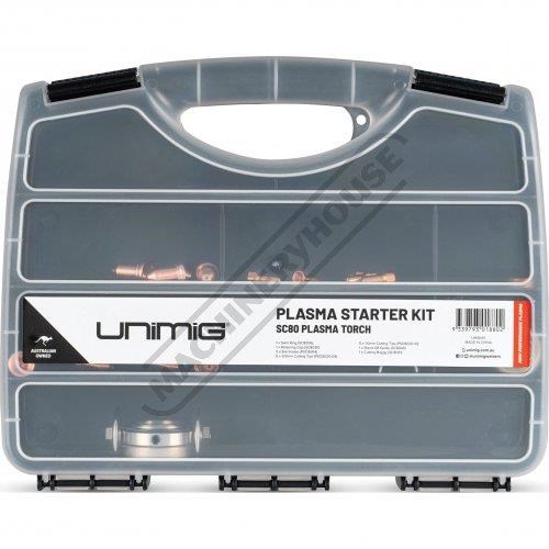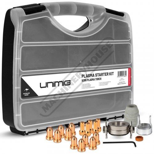 UNIMIG WELDERS UMSK45 SC80 Plasma Torch Consumable Pack Suits SC80 Plasma Torch Includes Cutting Tips, Electroeds, Swirl Ring, Retaining Cap, Stand Off Guide & Cutting Buggy