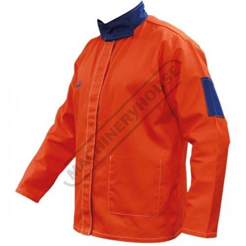 A cool, comfortable & very cost effective hi-vis welding jacket! Sewn with heat resistant Kevlar thread for longer life. FR (fire retardant) treated cotton, designed for light to medium protection against grinding sparks and welding spatter. High visibility orange, adjustable collar, pen pocket & internal pocket. The FR welders jacket with big features and small cost!