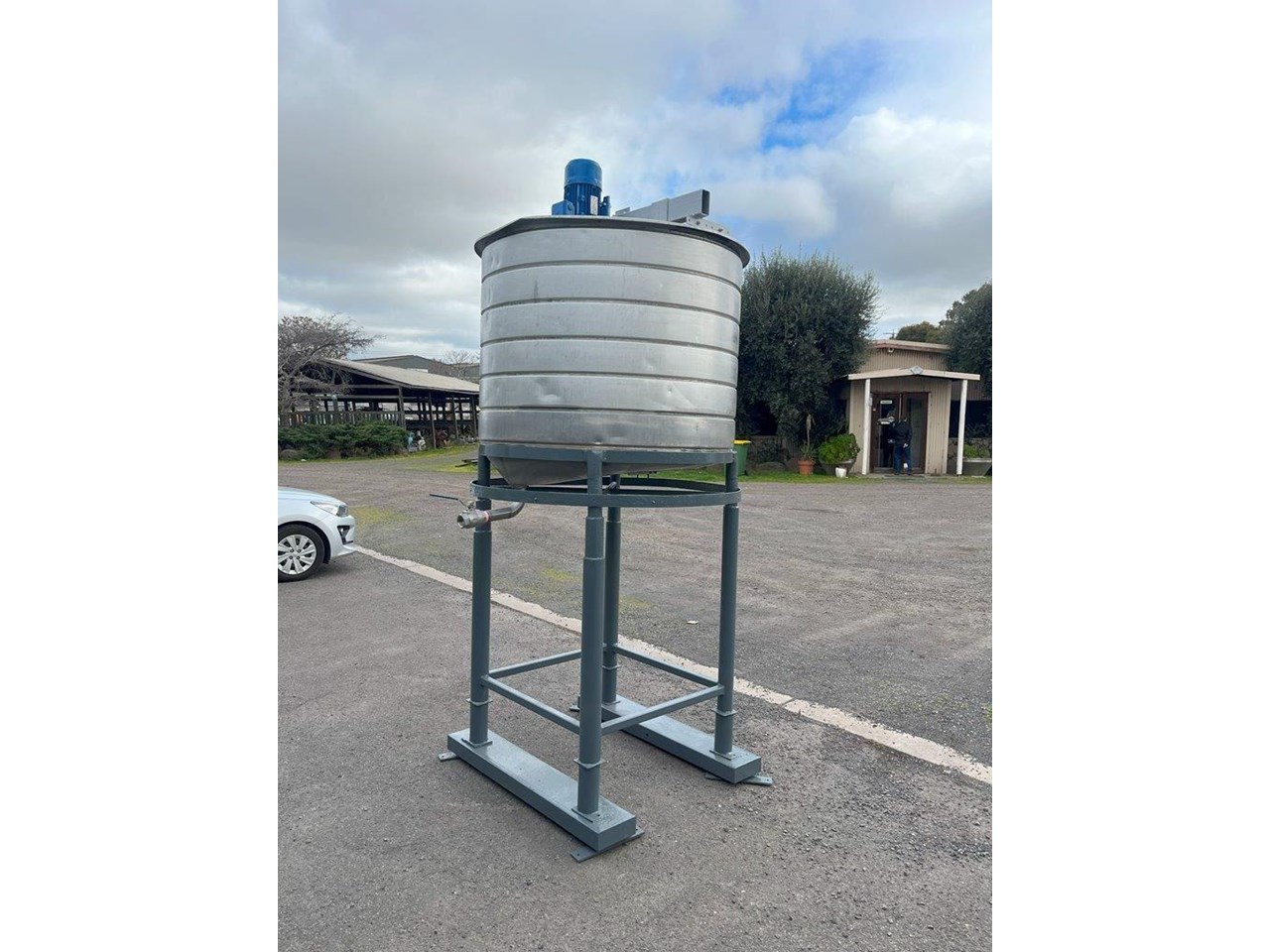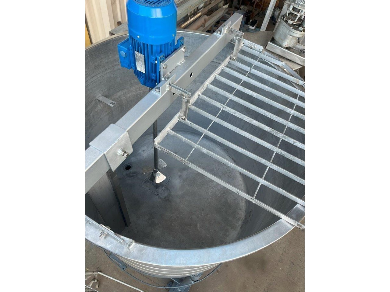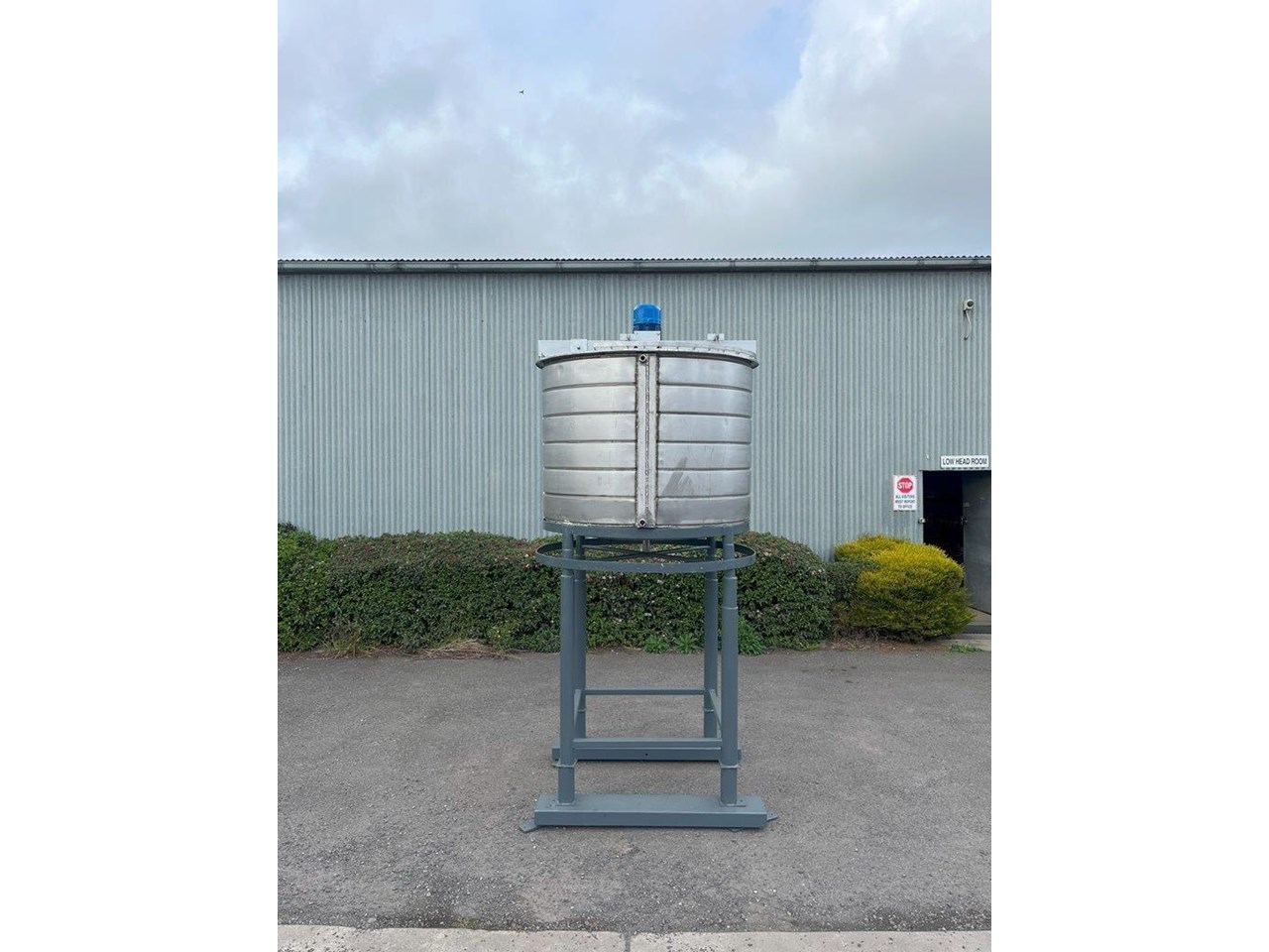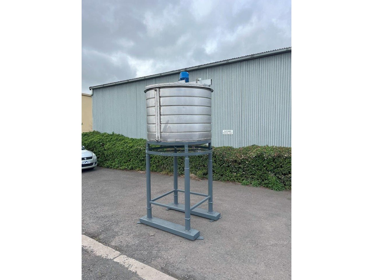 Stainless steel tank with mixer and jacket. 1150 Litres. 3 Phase 415V 1.5kW Motor with stainless steel mixing prop and shaft. RPM: 1410 Tank has a sloped bottom to a 1.5