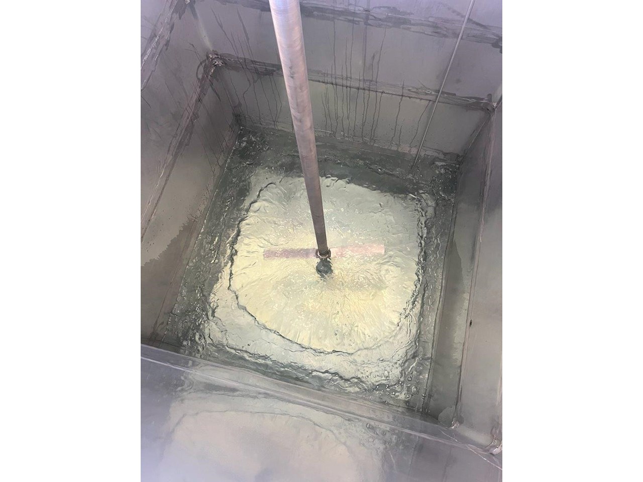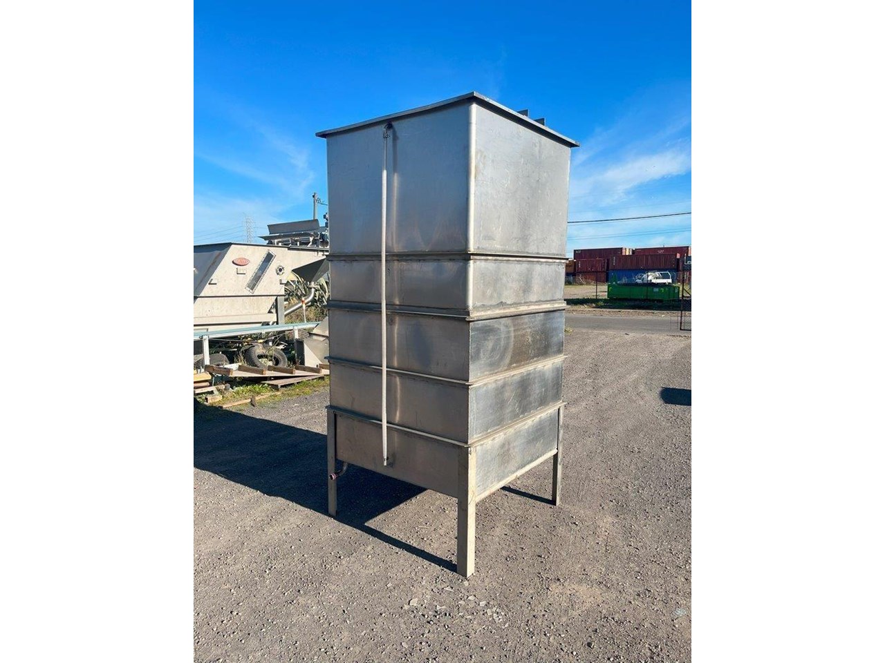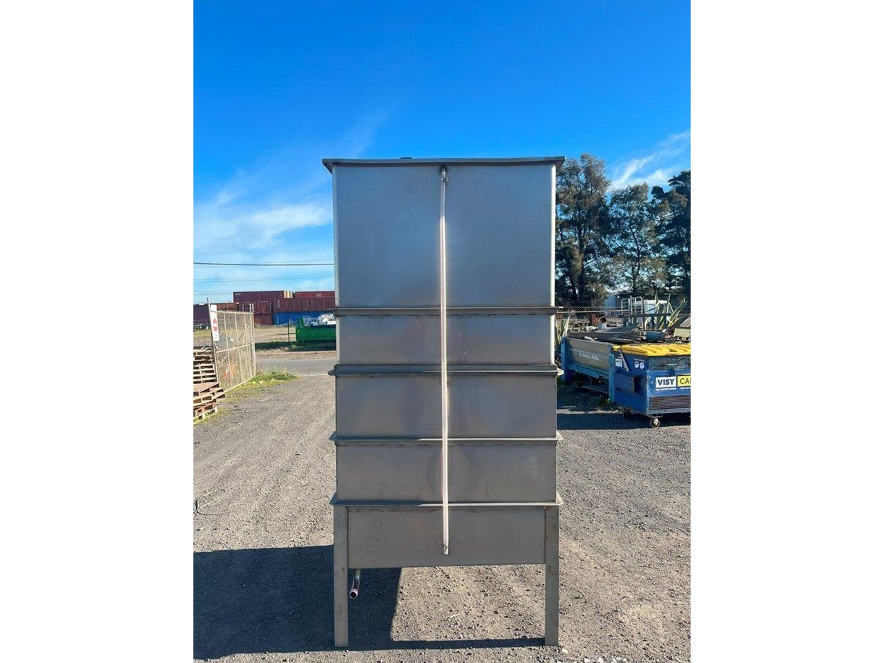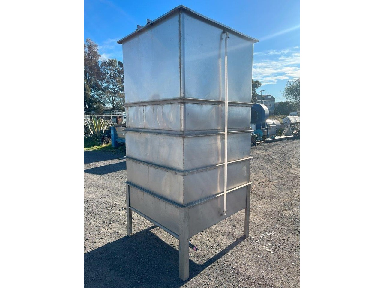 3100 Litre stainless steel square mixing tank. Sloped bottom to 1.25inch BSP Outlet. 3 Phase 415V 0.75kW SEW Geared motor. Agitator 129 RPM. Level indicating sightglass. Overall height 2880mm Leg Height 430mm Width 1300mm Runs well