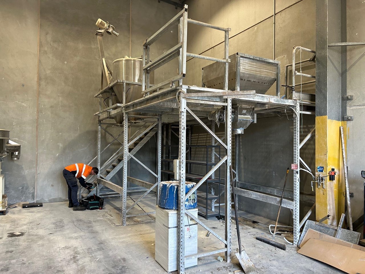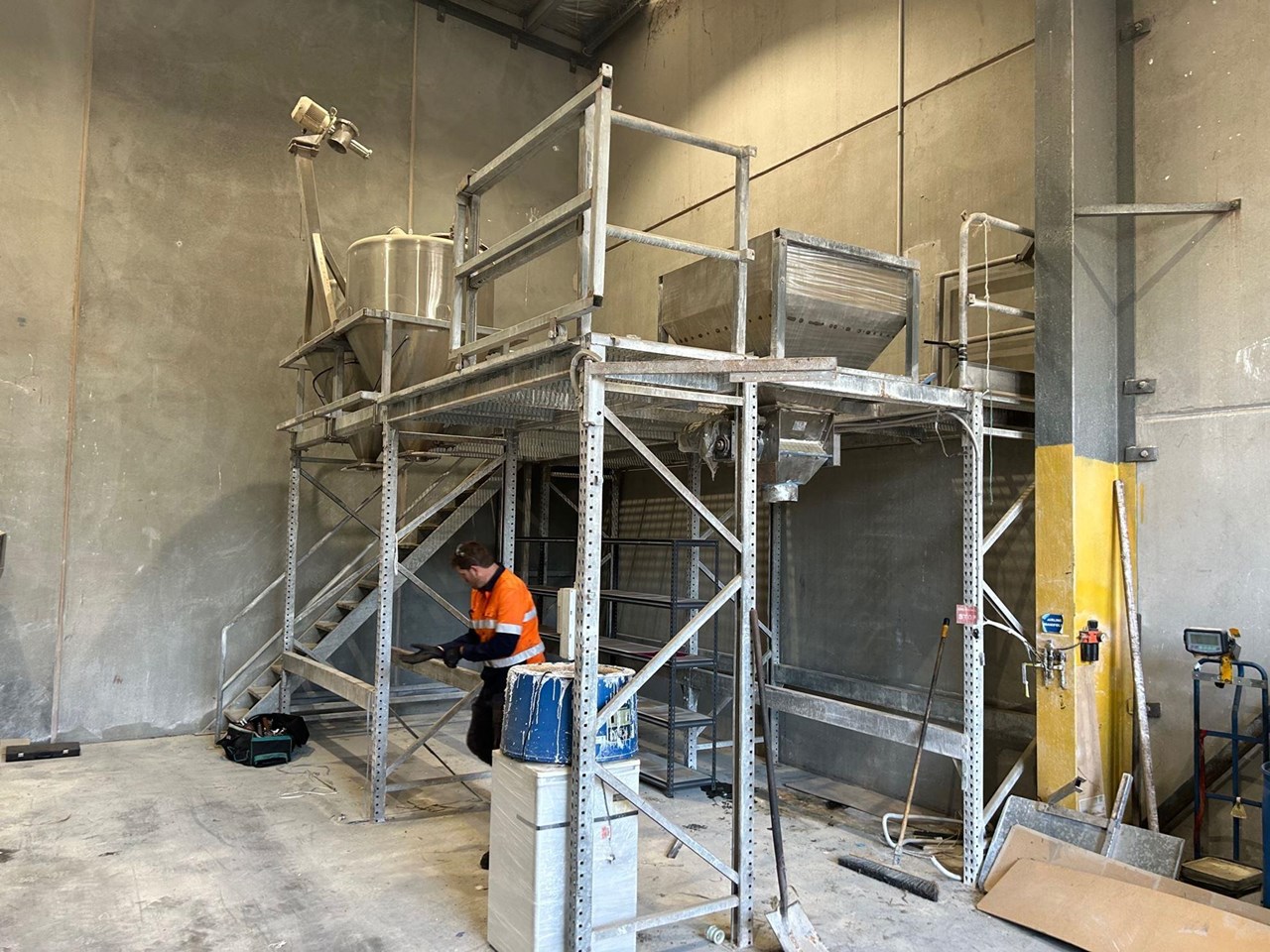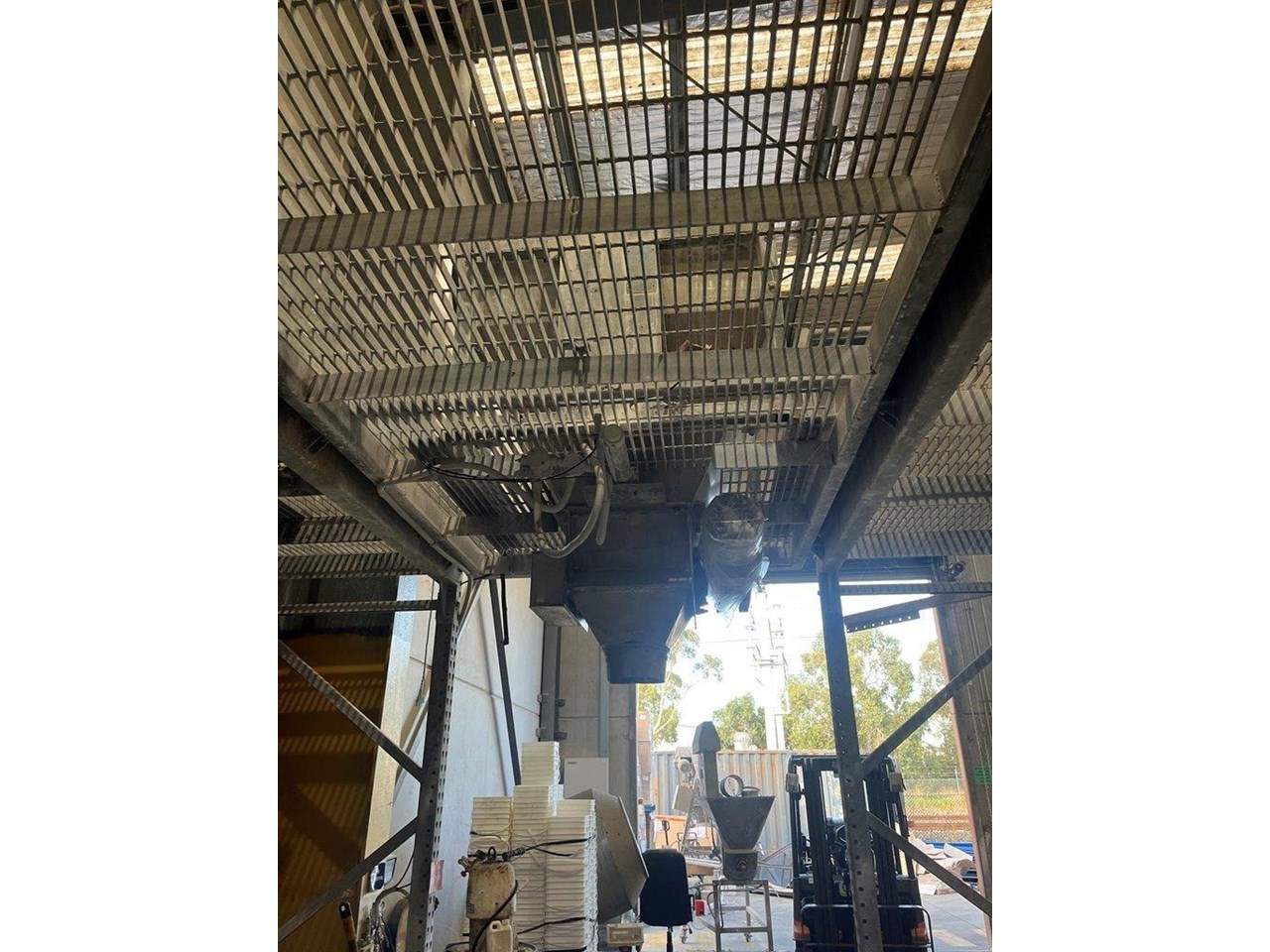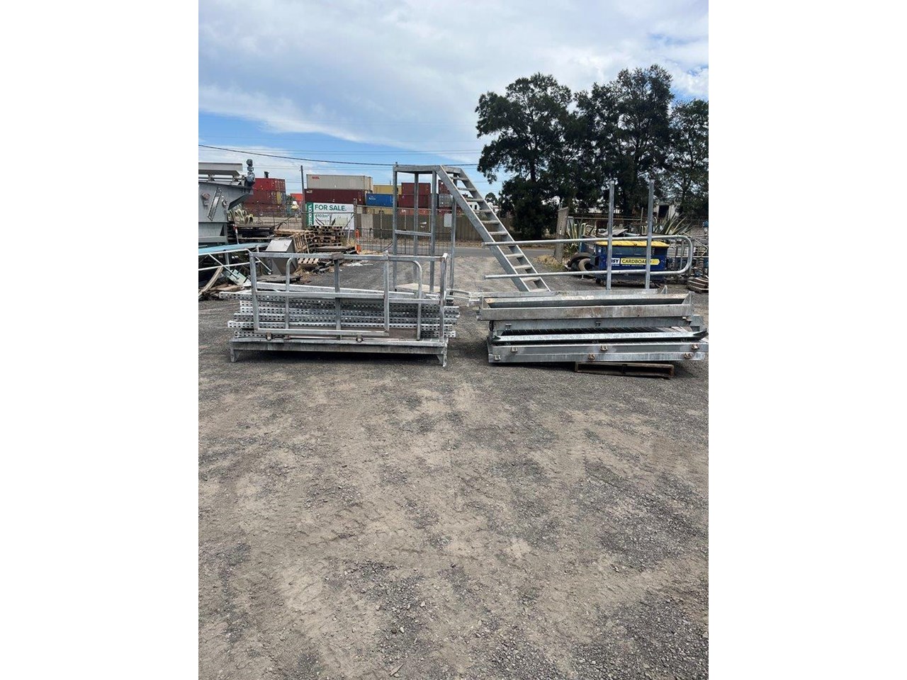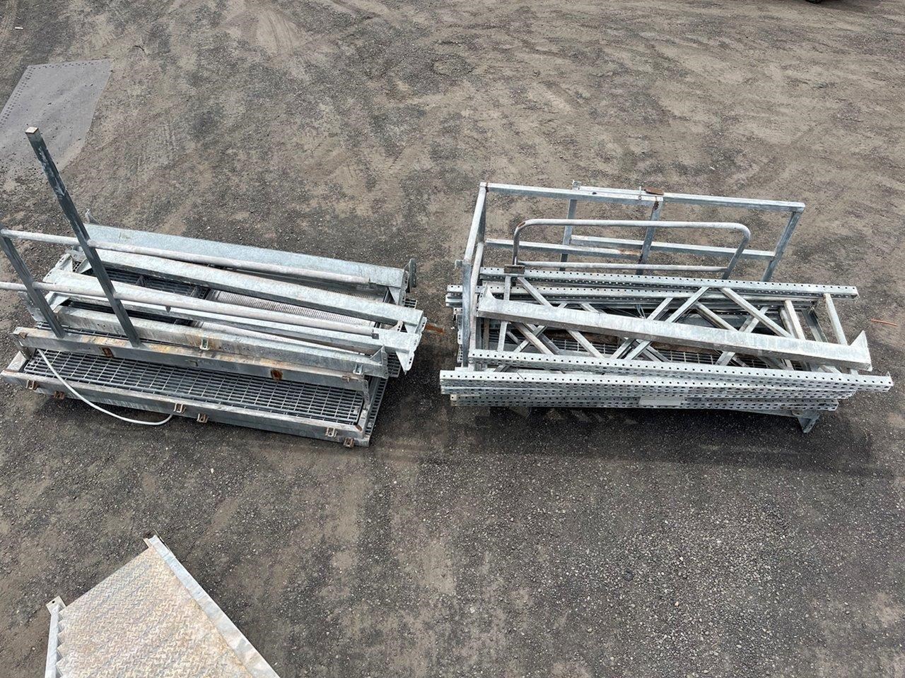 Galvanised steel platform with stairs. Platform dimensions 3500mm x 7000mm x 2700mm High. Stair landing dimensions 695mm x 1105mm. Stair Overall dimensions are 700mm W x 3990mm L x 2700mm H Platform has been removed from warehouse and flat packed. Hopper's and rotary valve are NOT included.