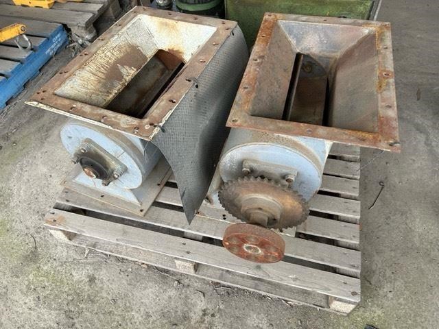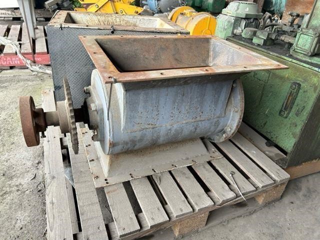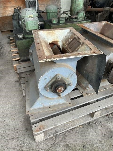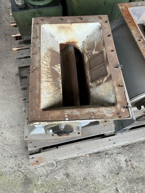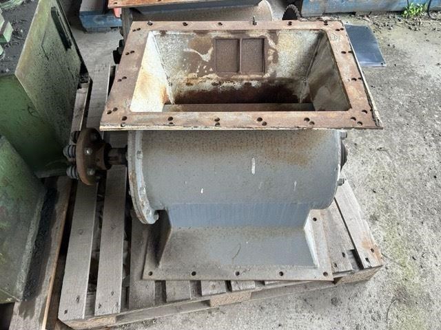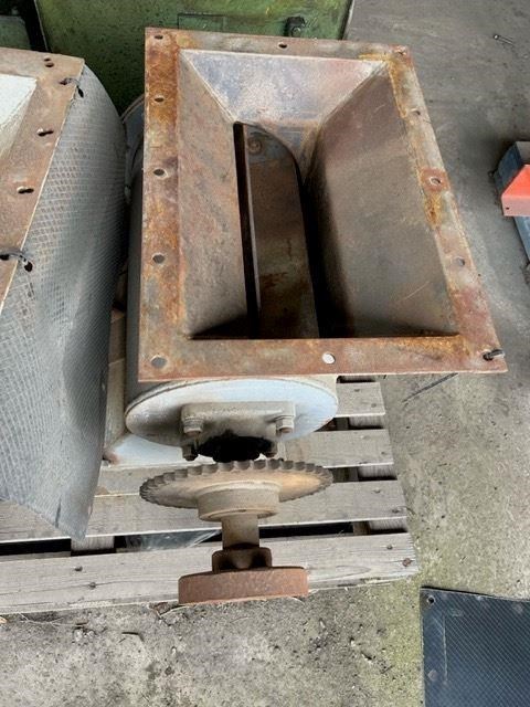 Mild Steel Rotary Valve Opening 500mm x 330mm Flange OD is 600 x 430mm Height between inlet and outlet is 500mm 6 vanes 50mm shaft (no drive motor fitted) Offset outlet 2 units available. Price per valve.