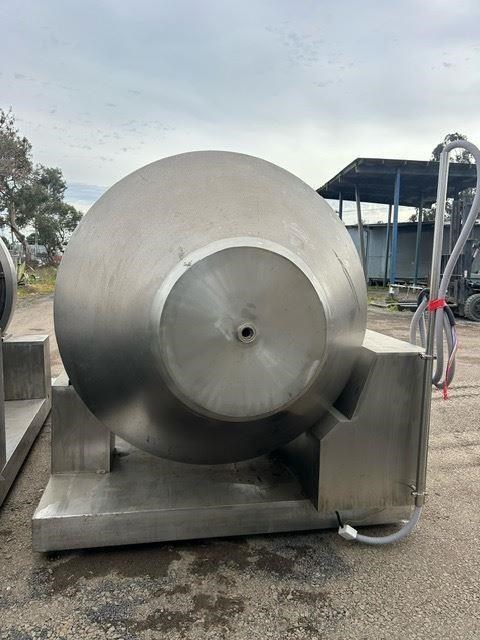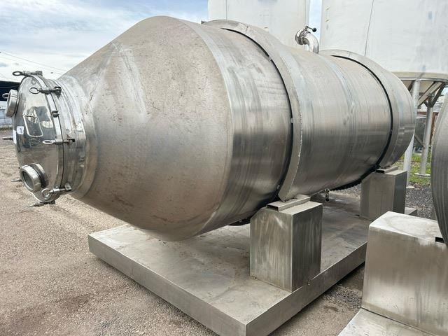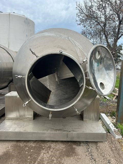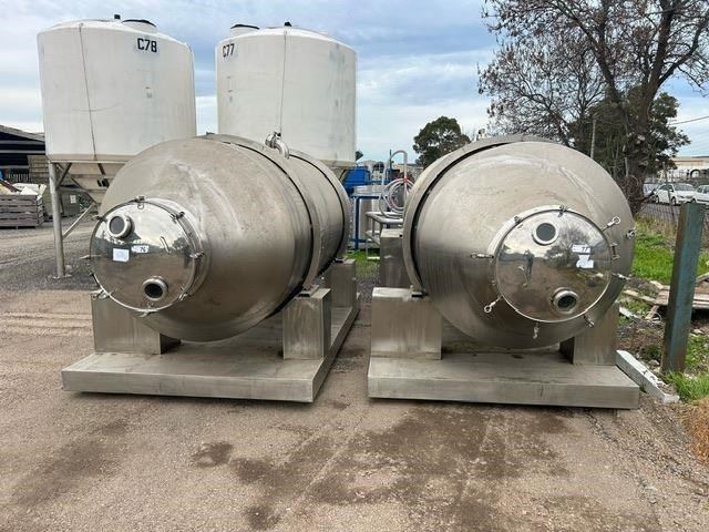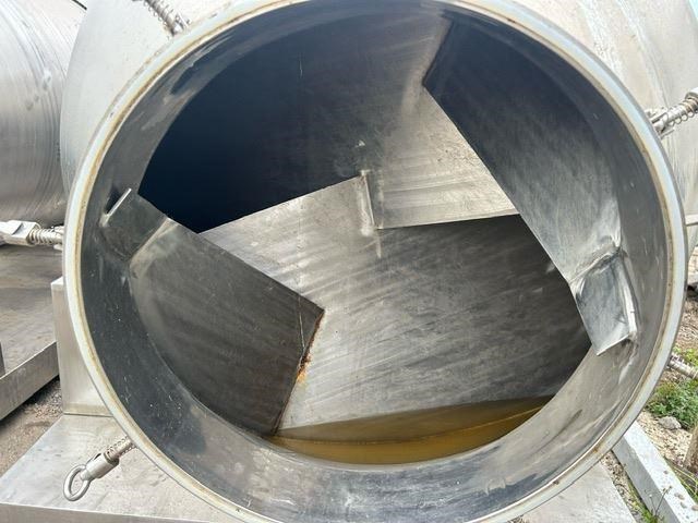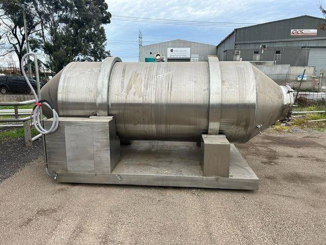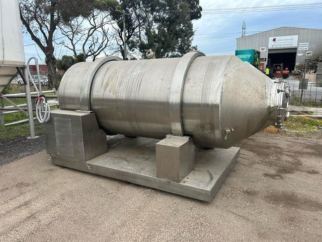 Stainless Steel Horizontal Barrel Mixer Total Volume of the barrel is 6000L Working Volume 3000 Litres 5.5kw 415V drive motor into a gearbox Barrel speed is approx 76rpm Overall length is 4.3m, overall width is 2m Diameter of Barrel 1.4m 600mm dia manhole for laoding and unloading of product. 85mm center outlet 2 mixers available, price per mixer.
