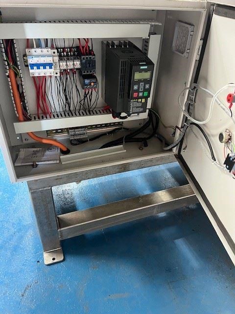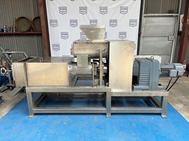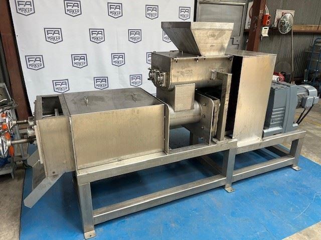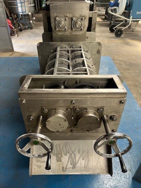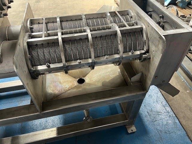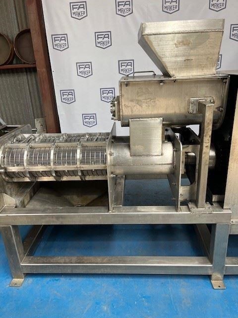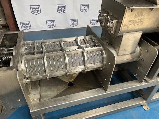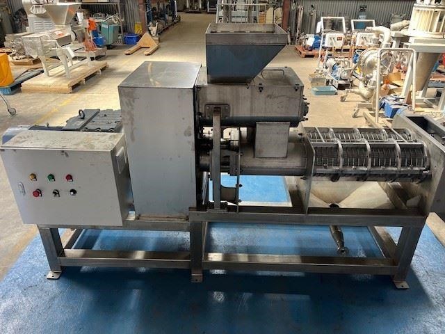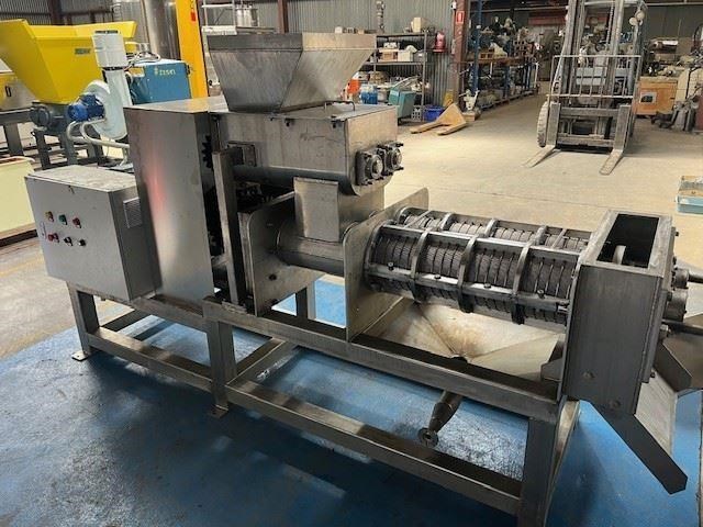 Stainless Steel twin screw press.7.5 kw 14 rpm 415 volt 3 phase. Hopper opening 390mm x 490mm 550mm long x 190mm dia twin feed screw . Screw press screws 190mm mm dia x 1.1m long 700 mm long wedge wire screens .5mm screen appeture Control board with Variable speed drive.