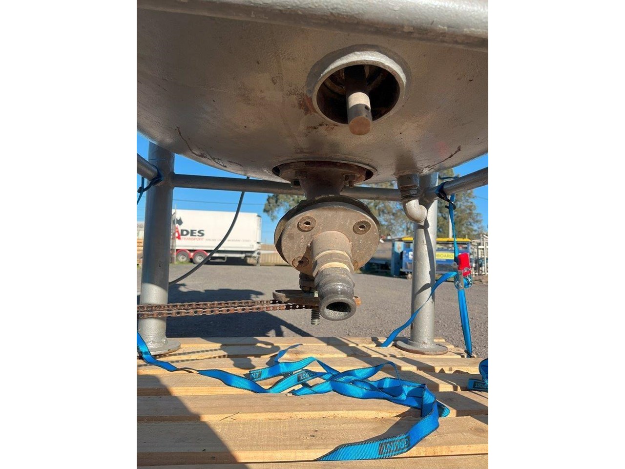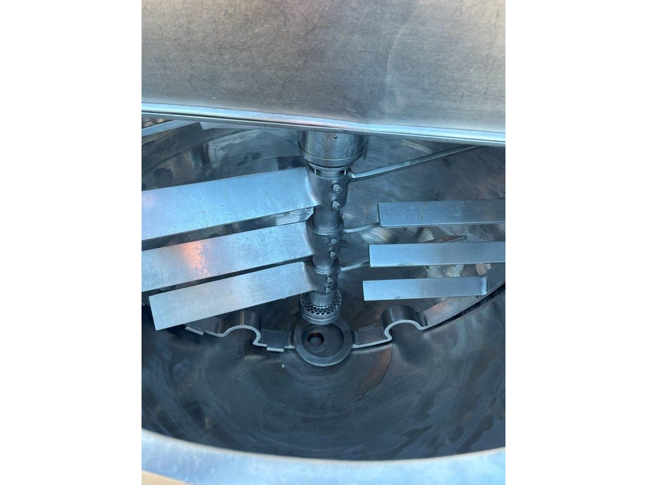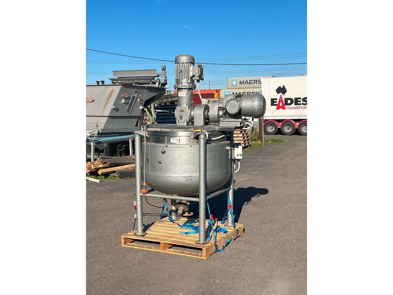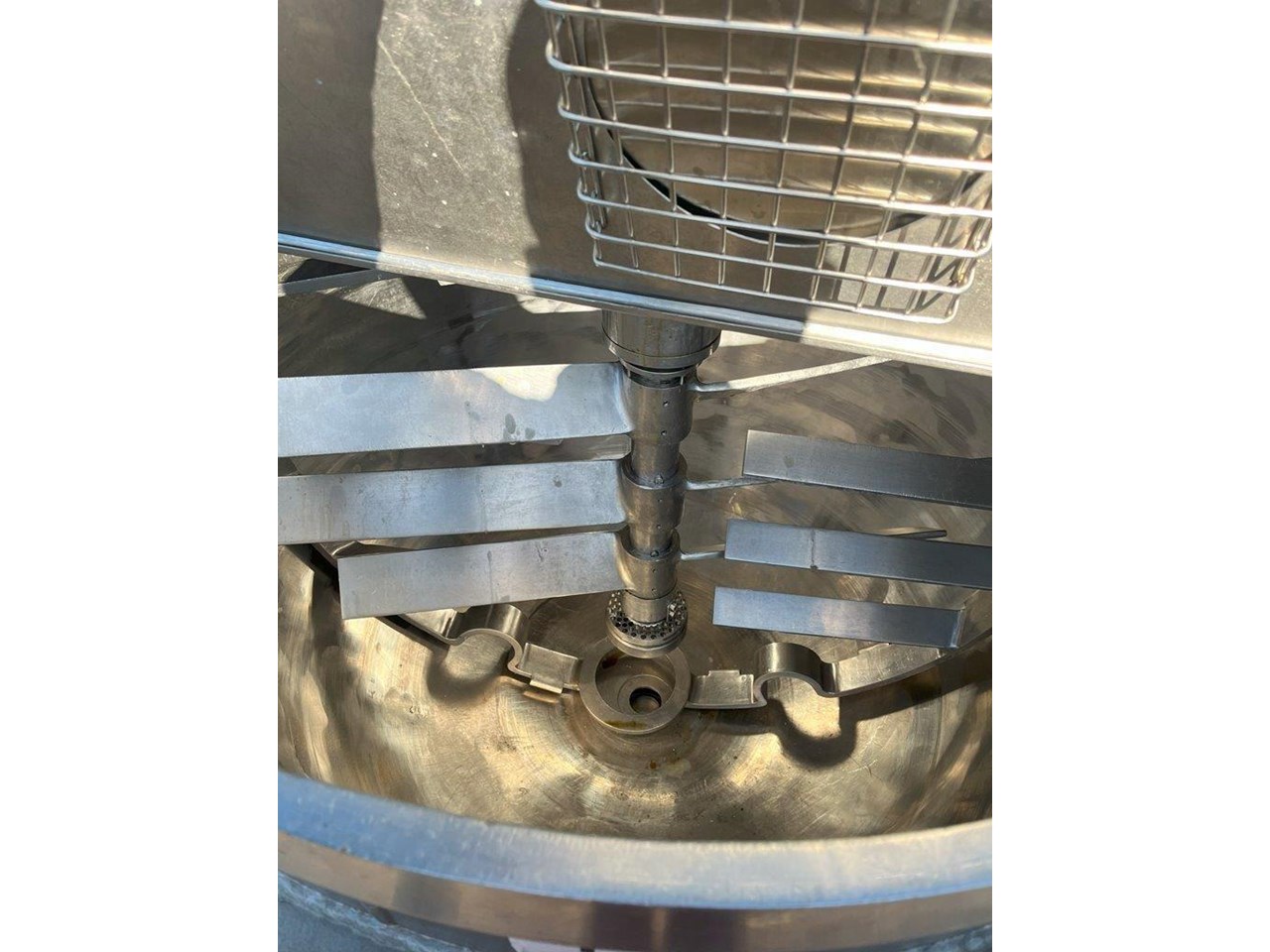Stainless steel mixing kettle. Approximately 350 litres. 3 Phase 415V power. Contra-rotating mixing blades. Emulsifying blade. (High shear mixing head) Variable speed Hot water jacket. Manually operated discharge valve to a 1.5