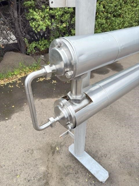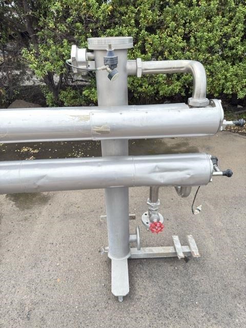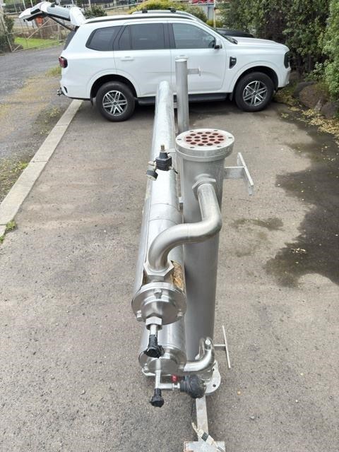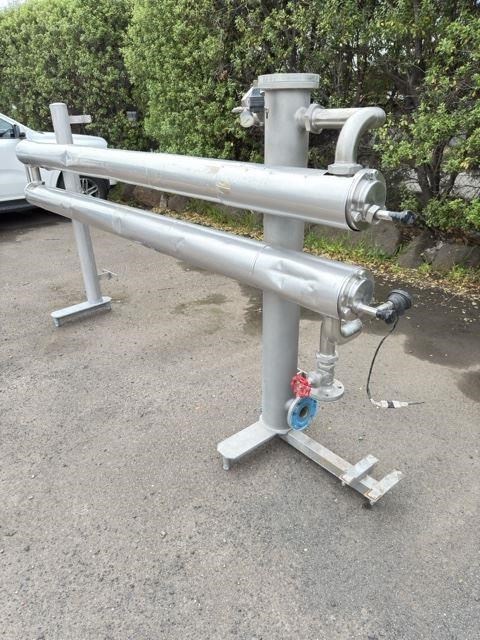 Stainless Steel Tube-in-Tube Heat Exchangers Two identical tube-in-tube heat exchangers constructed from stainless steel, each with the following specifications: Shell Diameter: 200 mm Length: 2.0 meters Inner Tubes: 10 tubes per unit Inner Tube Diameter: 20 mm (nominal) Tube Length: 2.0 meters Configuration: Tube-in-tube (10 inner tubes housed within a single outer shell) Material: Stainless steel (grade to be specified) Approximate Heat Transfer Surface Area: Per Unit: ~1.26 m² Total (2 Units): ~2.52 m²