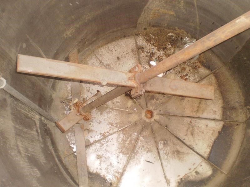Features:-- Litres 5500 Width or Diameter 1.8 Height 2.2 Arrangement Vertical Description:-- Jacketed tank, sloping bottom, central bottom outlet. Mild Steel outside stainless steel internally. Agitator shaft and mounting.