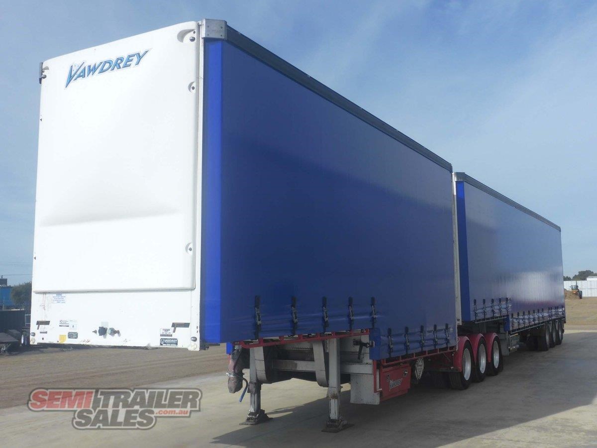 Title | 2014 VAWDREY VAWDREY 34 PALLET DROPDECK CURTAINSIDER B DOUBLE SET WITH MEZZ |
