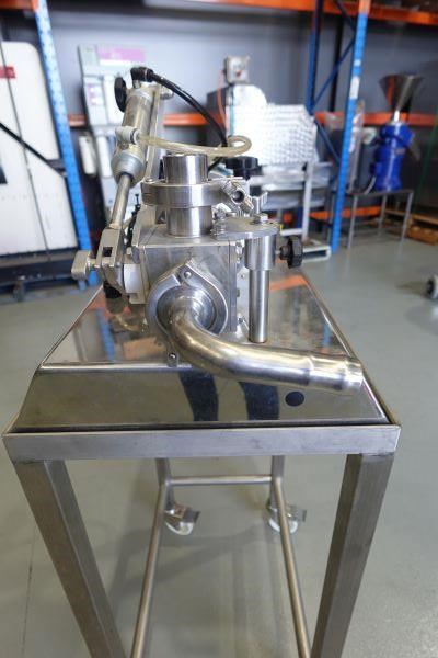 Unit is a benchtop single head rotary piston filler.