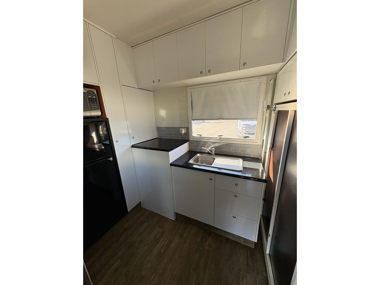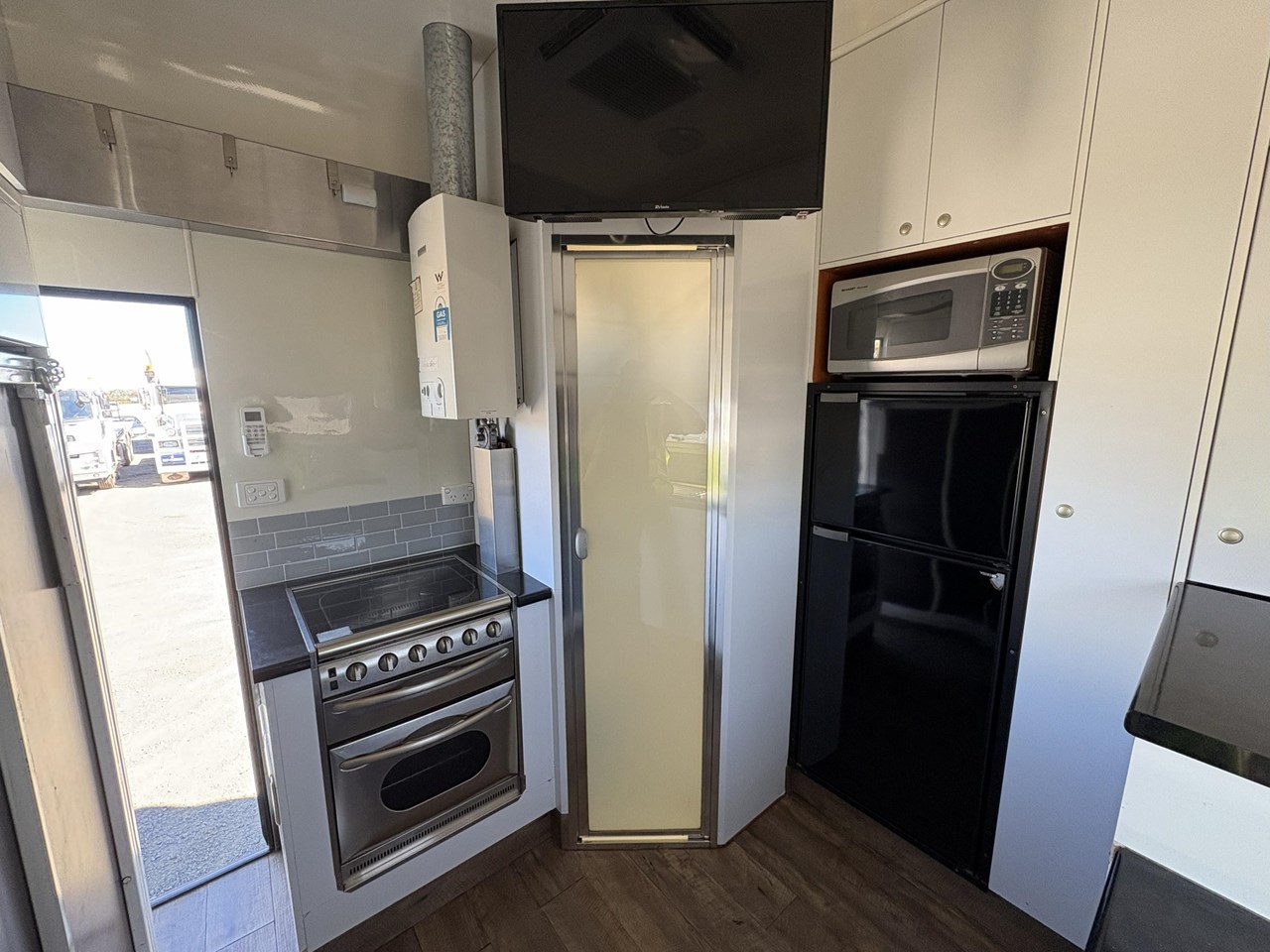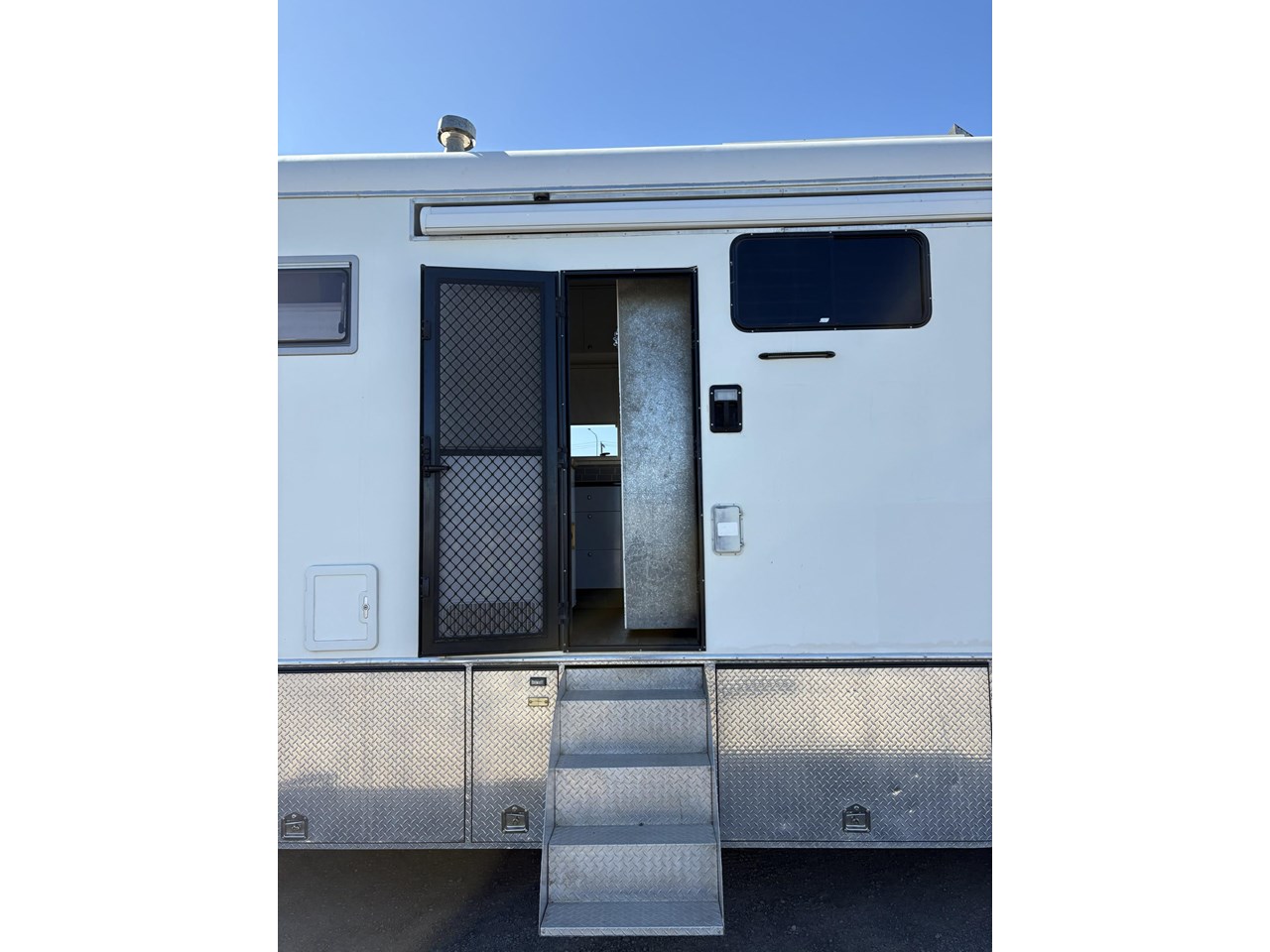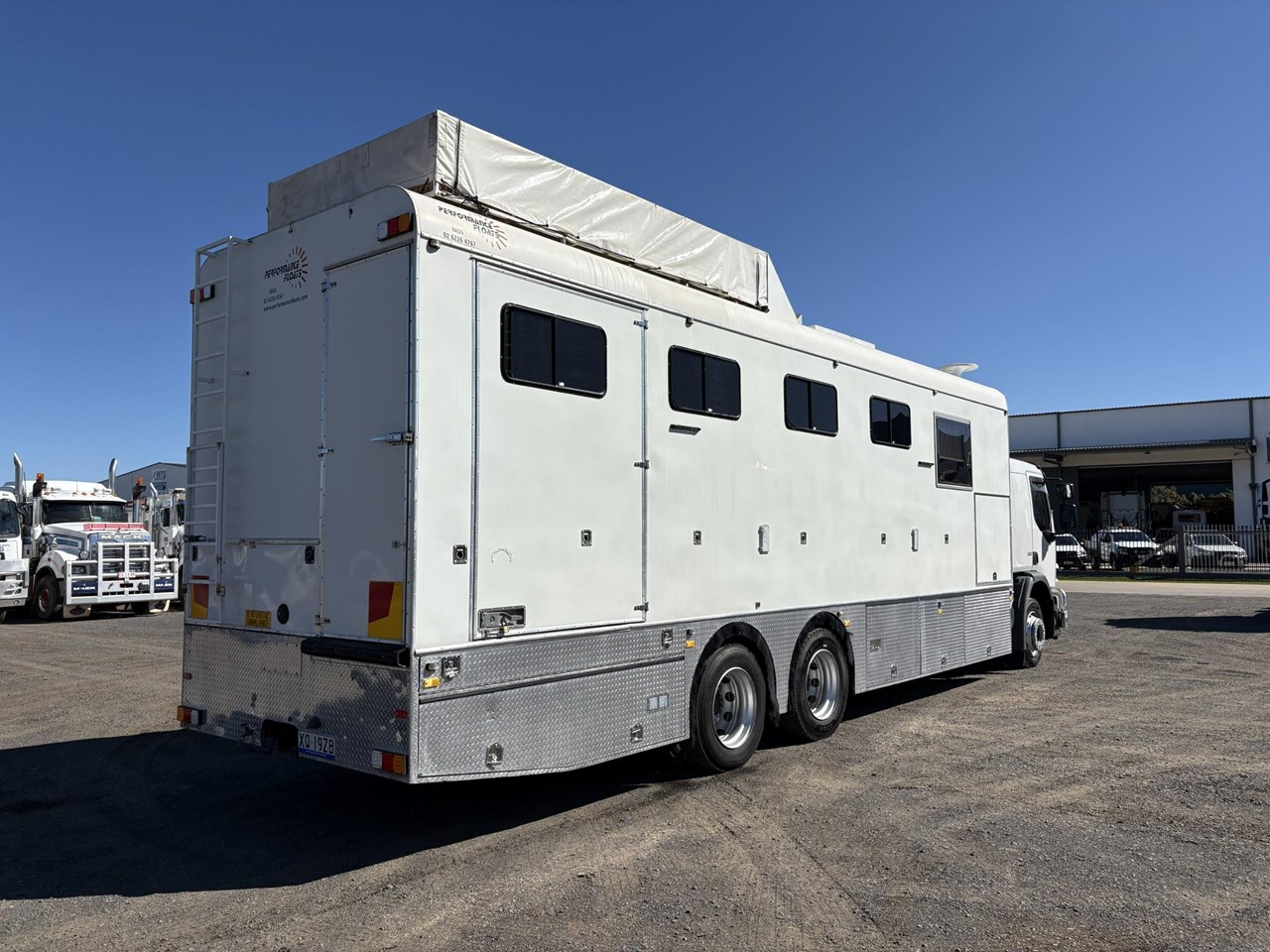 Volvo FE Horse truck with living: 2008 Compliance, Volvo D7 - 320HP Engine, 173,362kms, 12 Speed I Shift Transmission, Sleeper Cab with 2 extra seats, 8 Bag Drive Suspension, Room for 8 Horses, Side Load Ramp either side, Rear Door, Hay Rack, Diesel Generator, Pull Out BBQ, Full Kitchen, Shower, Toilet, 2x Double Beds, TV, Air Con, Ample Storage.
