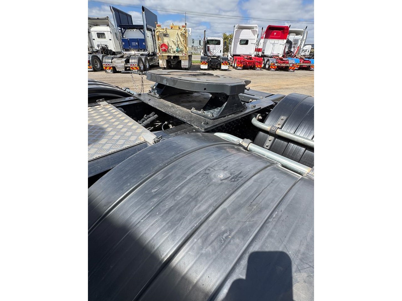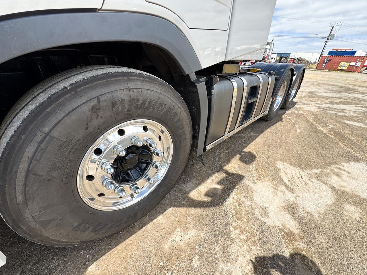10 stud Alcoa alloy wheels with super singles to steer