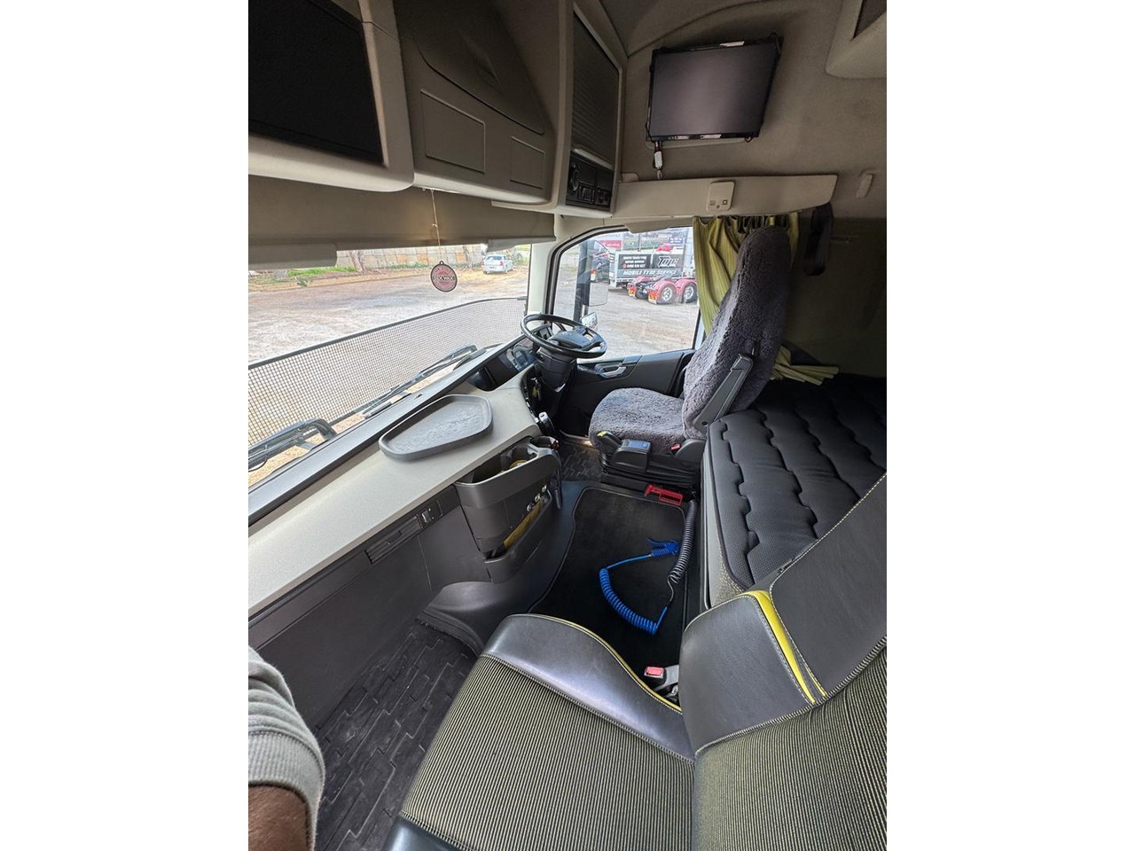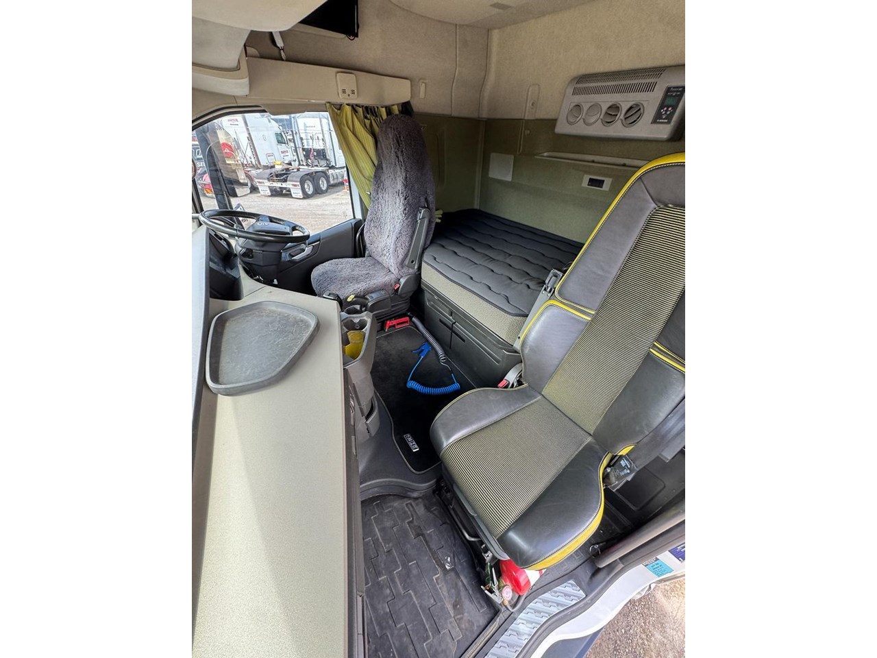 Interior: air ride driver's seat, UHF, radio AM/FM, cab blower, cupboards in sleeper