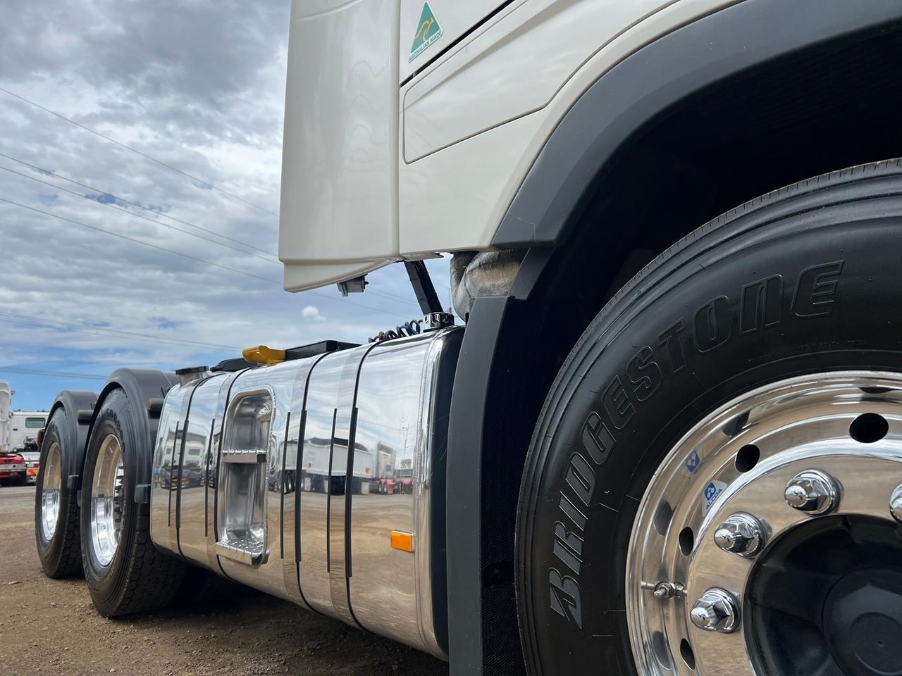 2022 Volvo FH600 6x4 prime mover XL Globetrotter cab,600 hp 16 ltr Volvo eng with 12 spd IShift trans,Volvo rear axles on 8 bag air bag susp,Alloy wheels and FUPS bull bar,Super singles on steer,Icepack-ES bunk air con,PTO end tipper hydraulics with return line,Right Weigh digital weight gauage,Diff and x locks,LED beacons,2" fixed QRTT,Disc brakes,Inverter,Microwave,Draw fridge,RAD,UHF,Alloy truck is in exellent condition with low kms and 131 ton Road Train rating.