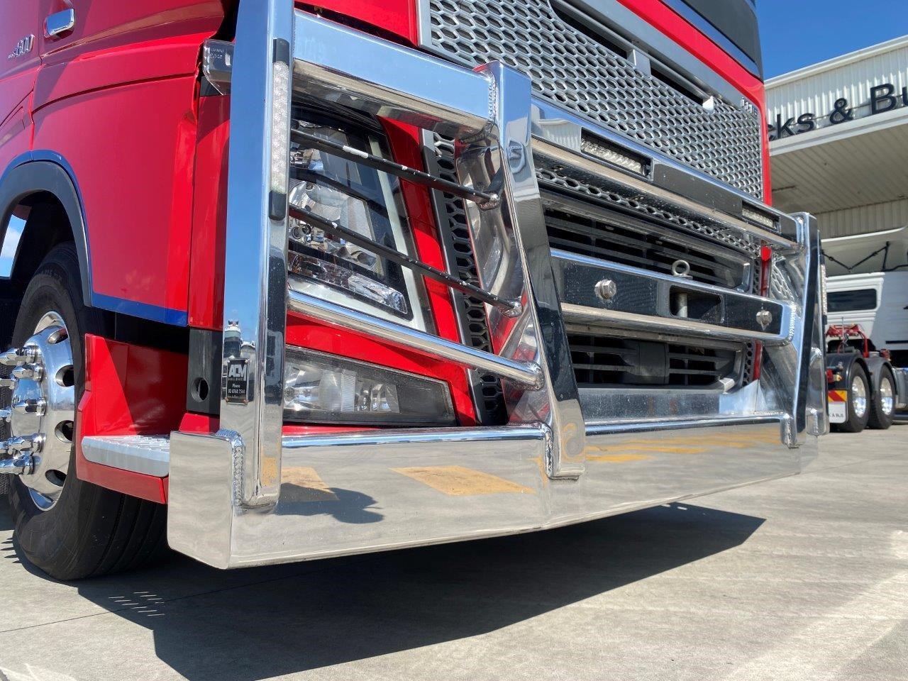 - 70 tonne B-double rated / 85 tonee Road Train (110 tonne on application), Bulbar, Fridge, Diesel Cab cooler, UHF, passenger air seat, FH16 premium trim