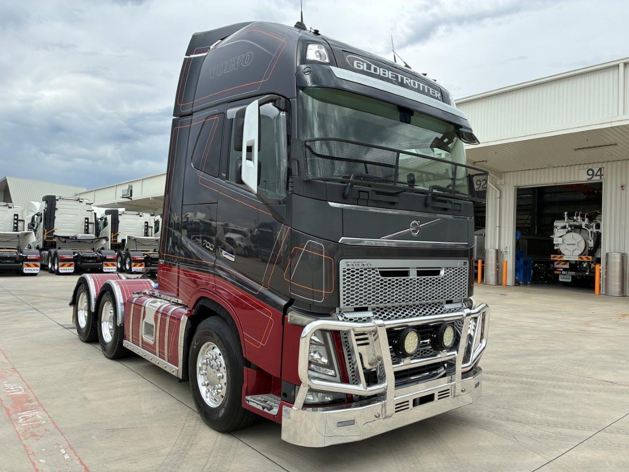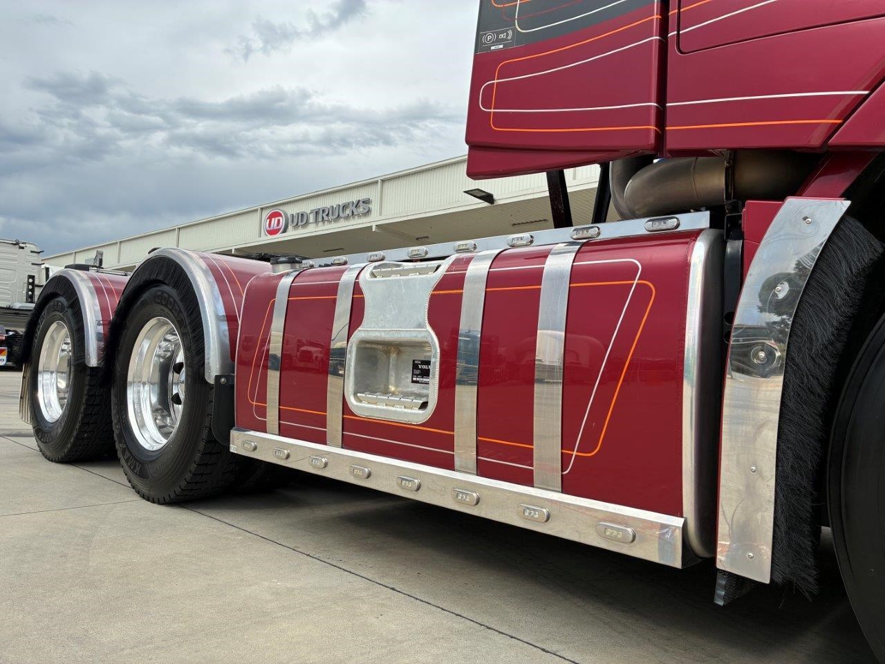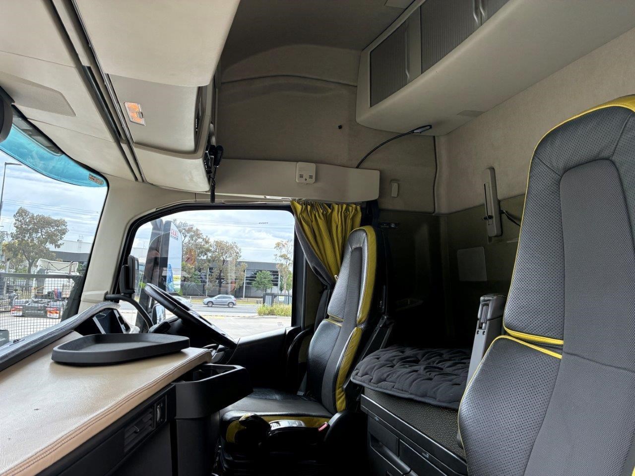 - Super singles, passenger air seat, FH16 premium trim, UHF, fuel tank skirts with lights.