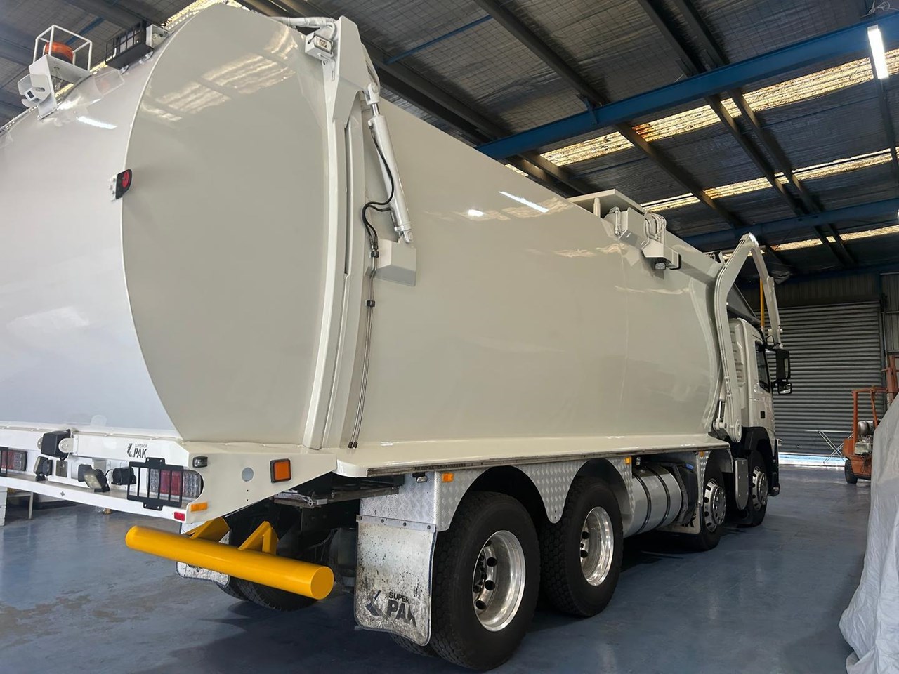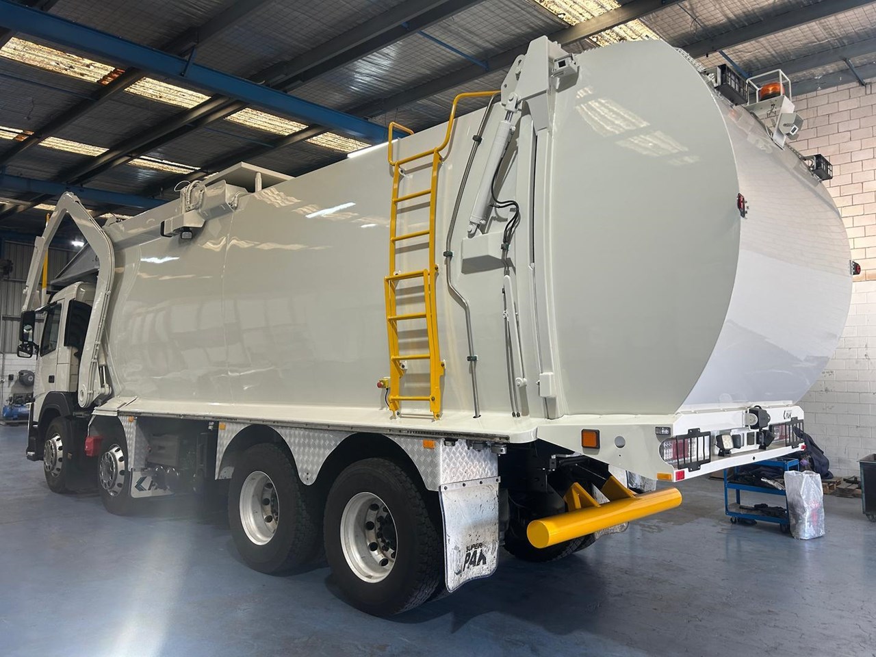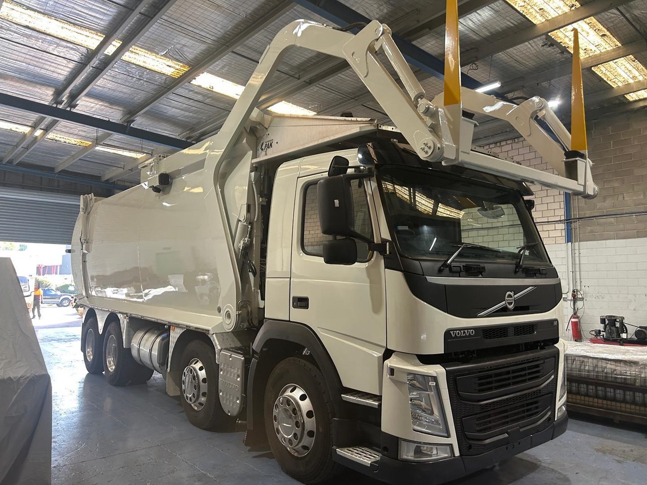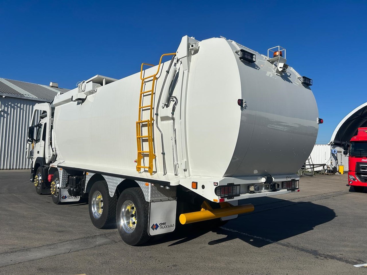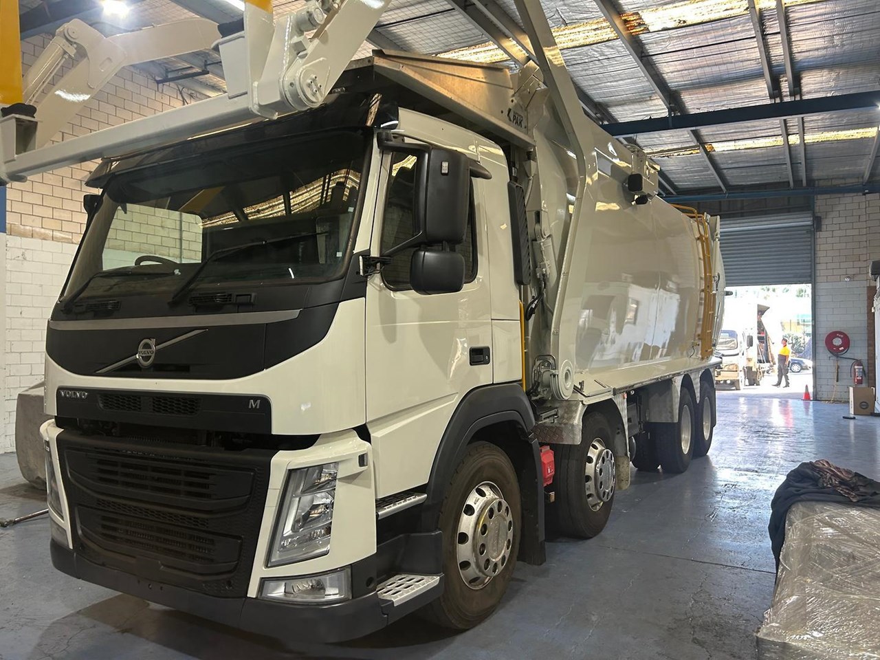 2018 VOLVO FM 8X4 FRONT LOADER, Volvo D11 370 HP , Volvo 12 speed Transmission, Volvo Diffs, airbag suspension, Disc brakes, Fitted with Superior Pak front loader compactor body.