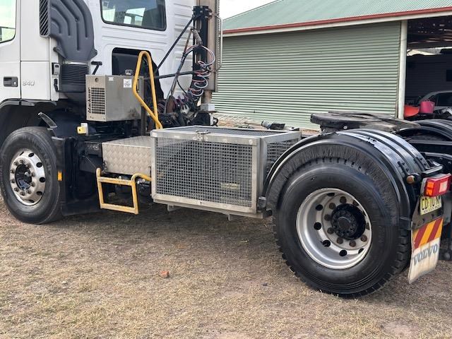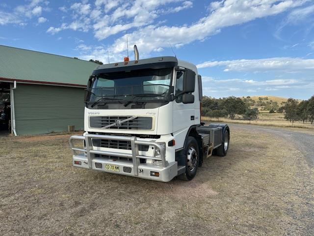 10/2002 Volvo FM 9 4X2 single drive prime mover with 340 HP Volvo motor and automatic I shift gearbox. Direct form major infrastructure company with a genuine 492,000 kms, in very tidy condition, hydraulics and registered in NSW until October 2026.