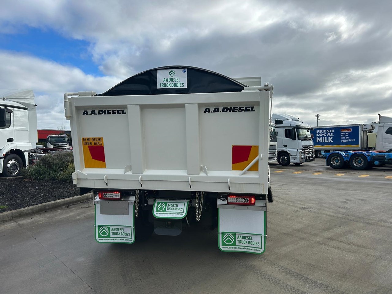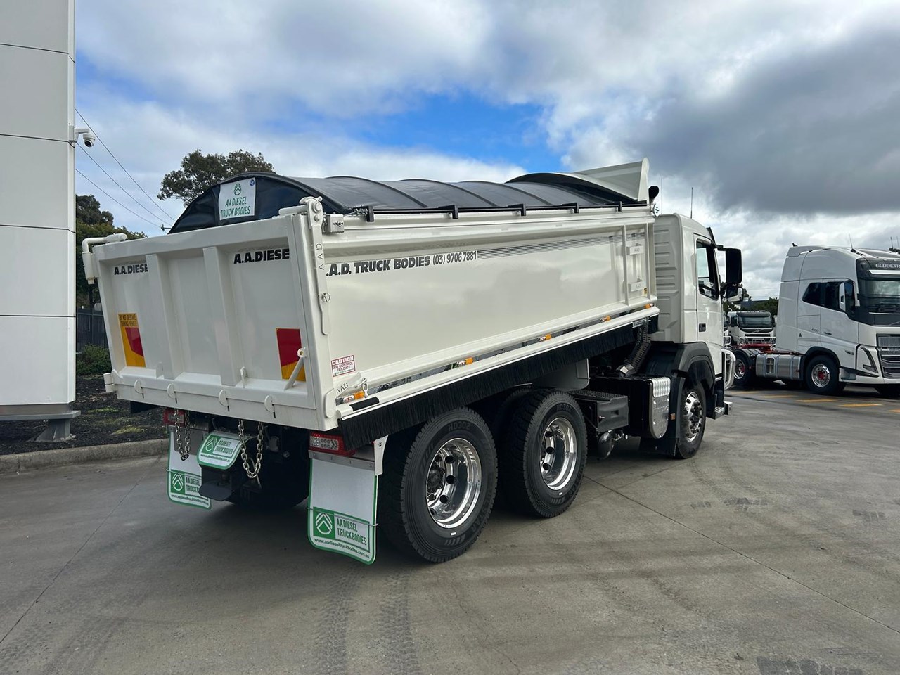 2021 VOLVO FM 13 540HP, 6X4 DAY CAB TIPPER. Volvo 13 Litre 540 HP, 668,000 Kms, Volvo 12 speed I-Shift transmission, Volvo Diffs, Diff locks, Airbag suspension, Alloy wheels, Alloy tank, Bull bar, Fitted with New AAD tipping body with Remote tarp and rear cross member with air electrics and Hydraulic connections and tow hitch, LED beacon light, Reverse camera and more.