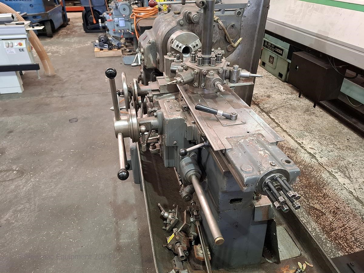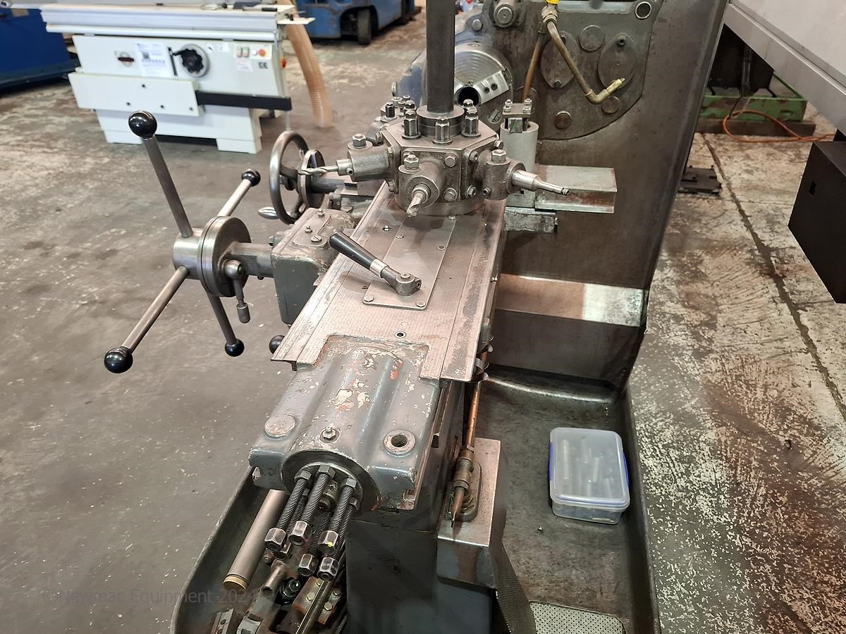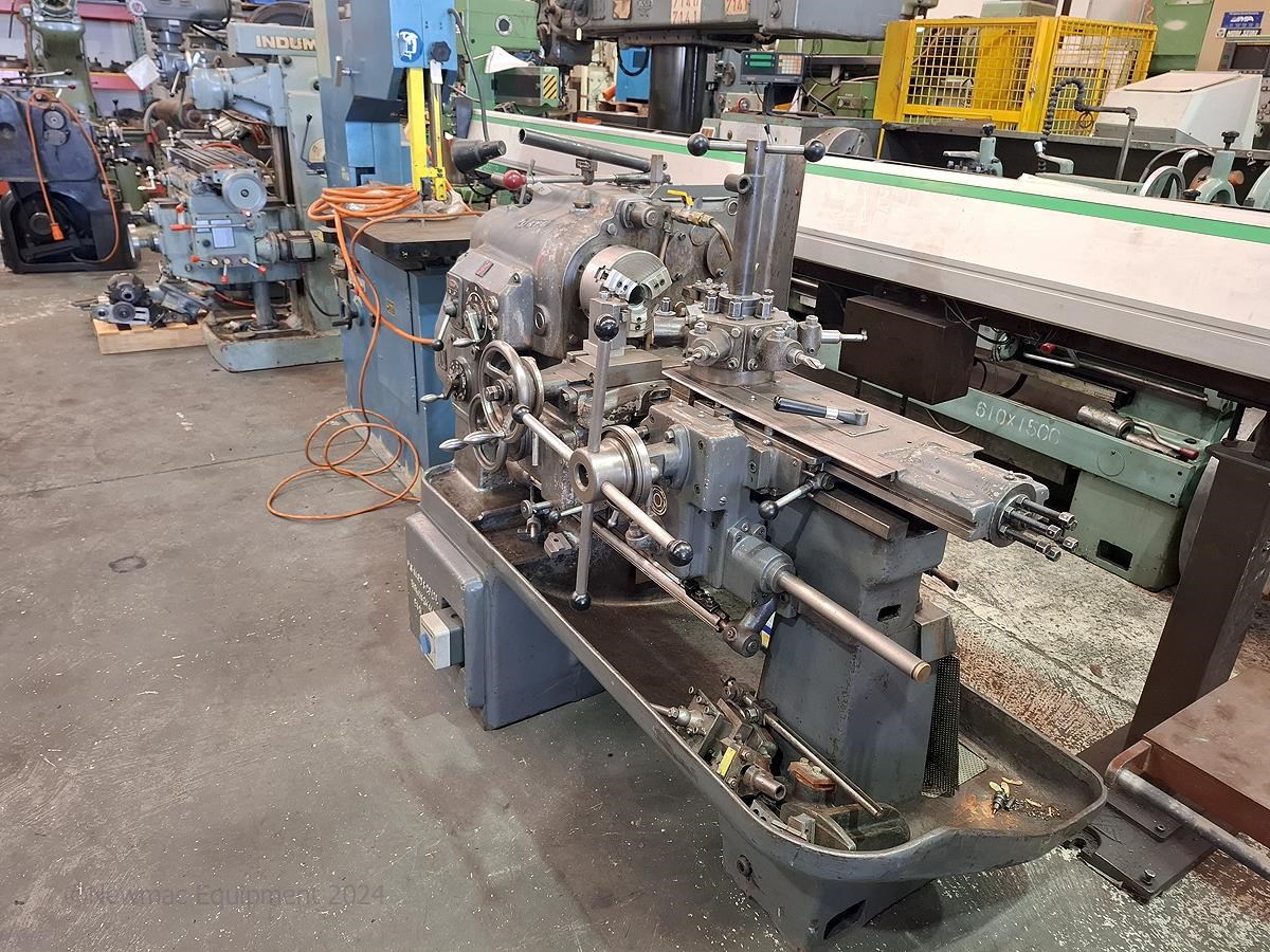 This English-made Ward 2DS capstan lathe, also known as a turret lathe, features a spindle bore of 1½ inches. It offers a spindle speed ranging from 60 to 2040 RPM and is equipped with a carriage which moves along the bed & has front & rear tool posts, typically used for turning, facing & parting off operations. As well as the standard 6-station turret.