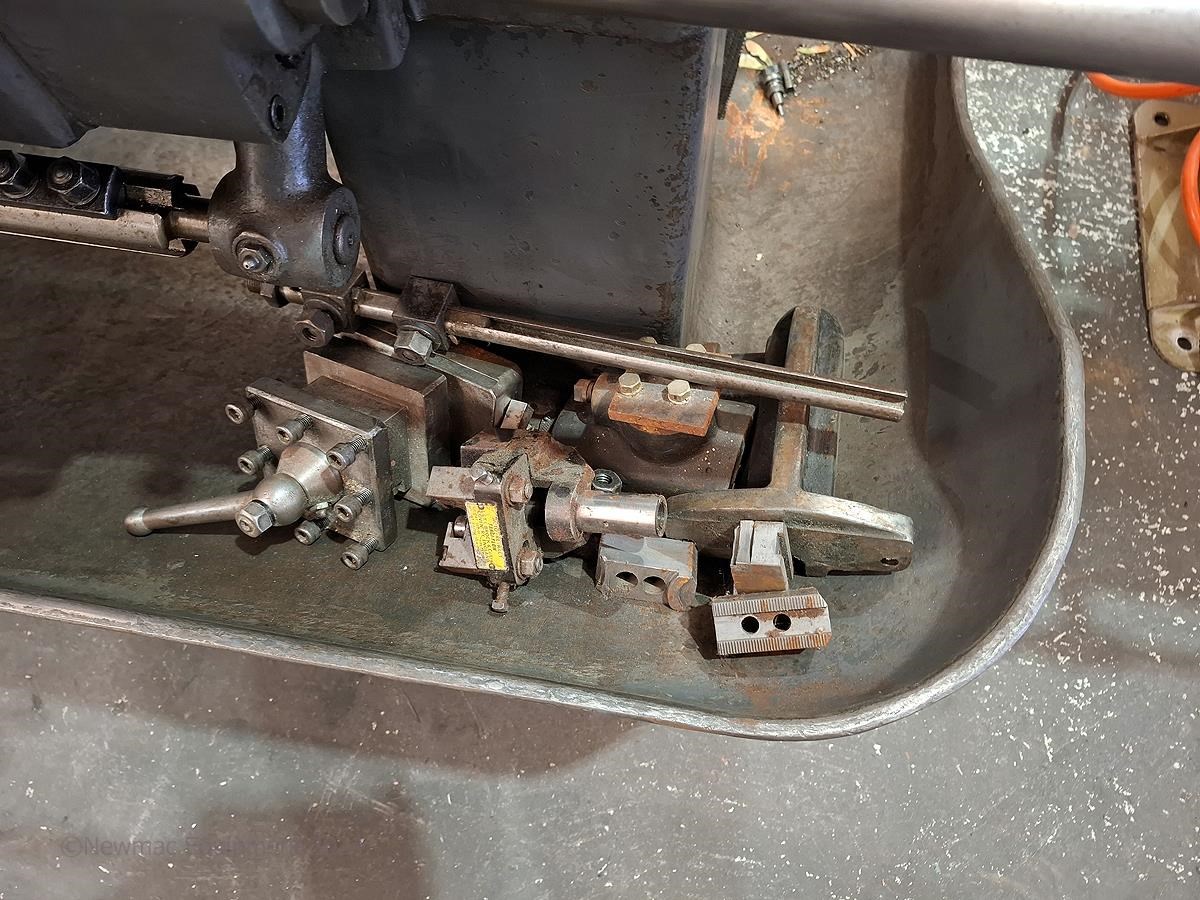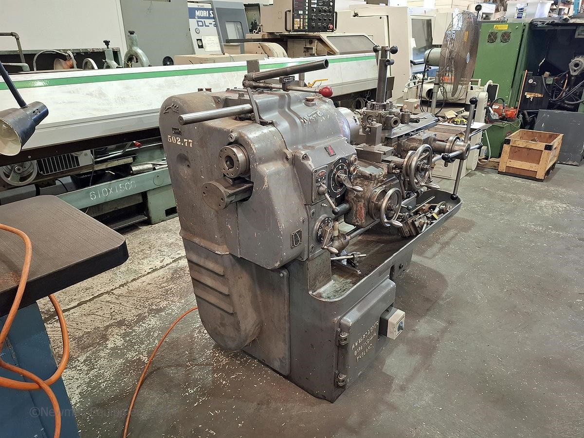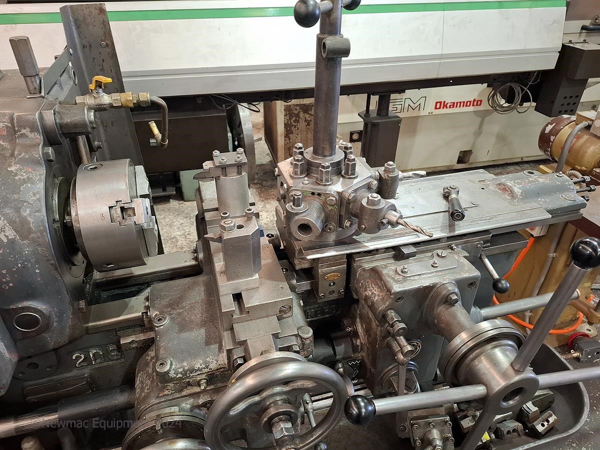 This English-made Ward 2DS capstan lathe, also known as a turret lathe, features a spindle bore of 1½ inches. It offers a spindle speed ranging from 60 to 2040 RPM and is equipped with a carriage which moves along the bed & has front & rear tool posts, typically used for turning, facing & parting off operations. As well as the standard 6-station turret.