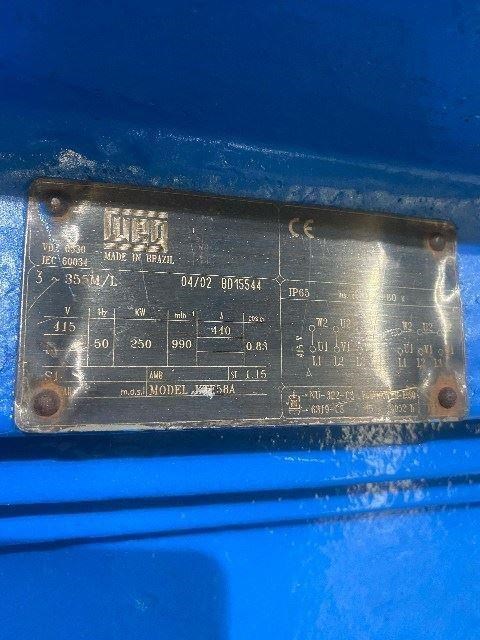 WEG 250kw 990rpm. 415v 440amp. Frame size 355M/L. IP 65. Shaft diam 110mm x 210 long.